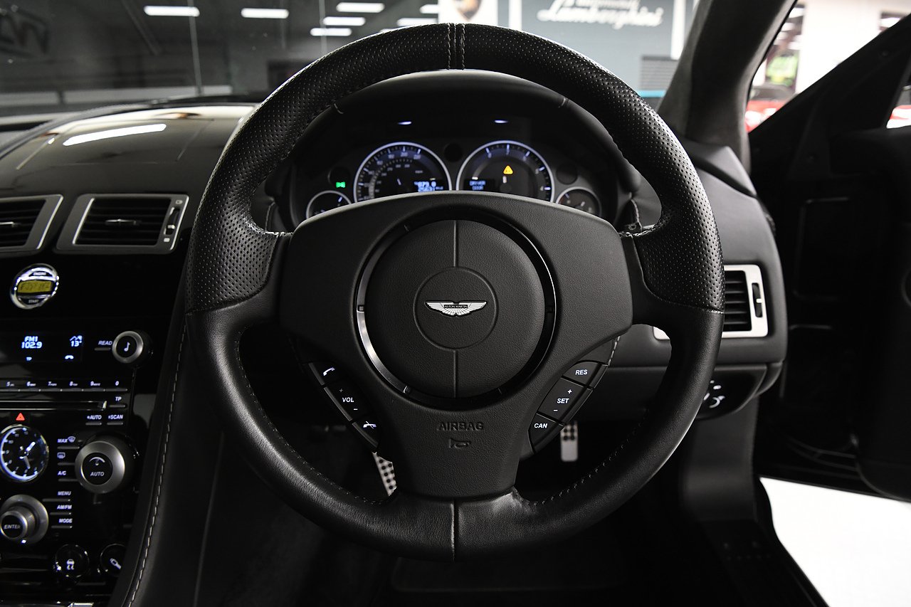 VVS are pleased to offer this 2009/59 Aston Martin DBS finished in Storm Black over Obsidian black leather and alcantara interior. This example is equipped with Fully electric and memory seats, Contrast Silver stitching, Piano black interior trim, 6 speed manual, Carbon fibre mirror arms, Carbon fibre front splitters, Carbon fibre rear diffuser, Carbon fibre door trims, Bluetooth, Cruise control, Front and rear parking sensors, Black brake callipers, 20" 10 twin spoke alloys finished in Silver and a comprehensive service history from new with Aston martin warranty until 12/26