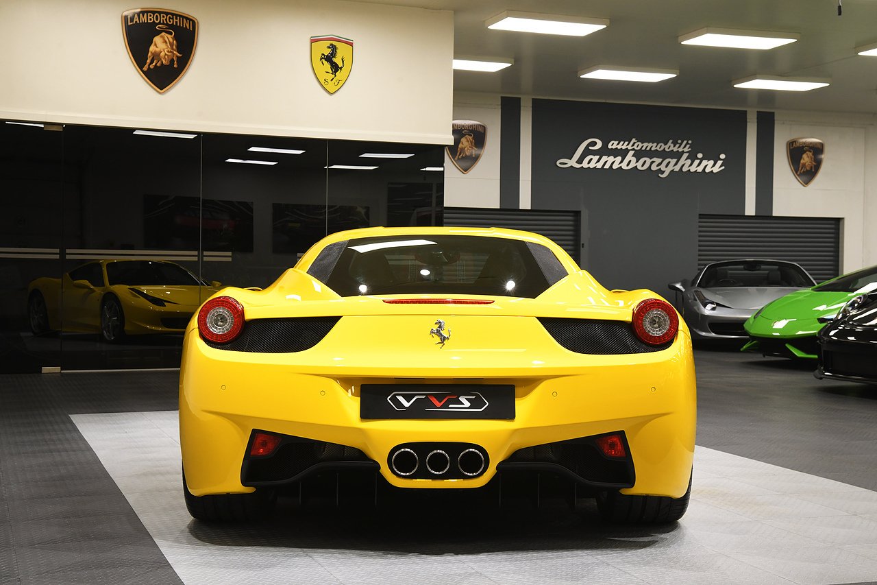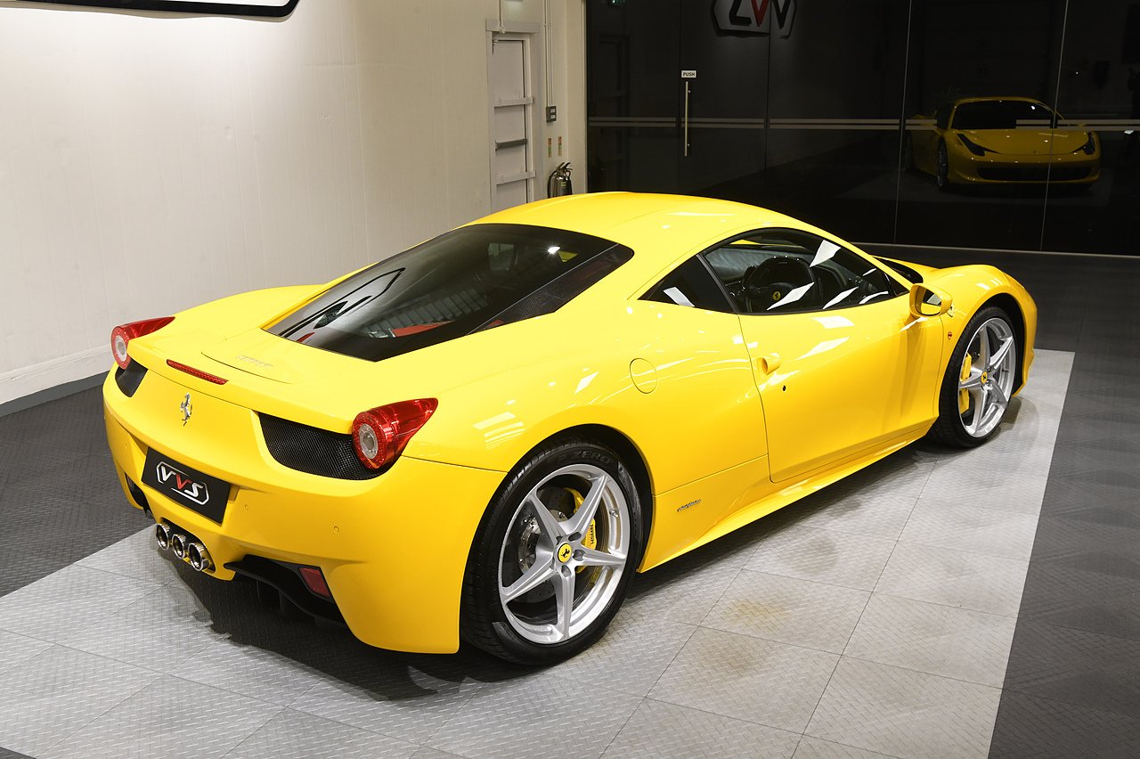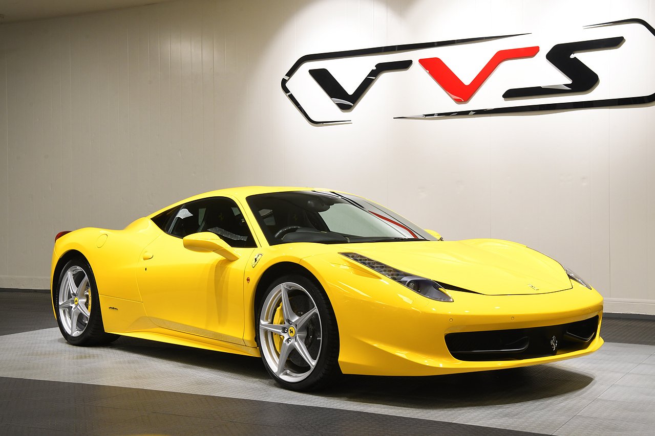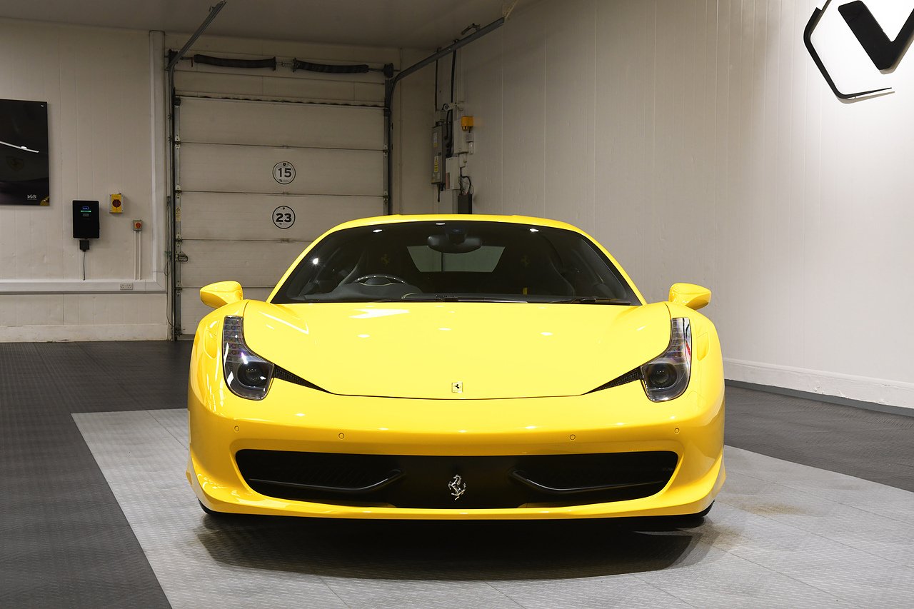 VVS are pleased to offer this 2011 Ferrari 458 Italia in Giallo over Nero leather interior. This example comes with Carbon race seats, Carbon fibre drivers zone with LED's Carbon fibre dash inserts, Carbon fibre central bridge, Yellow rev counter, Giallo contrast stitching, Cavallino stitched on headrests, Rear bench in leather, Front and rear parking sensors, Adaptive front light system, Electrochromic exterior and interior mirrors, Scuderia shields, Giallo brake callipers, 20" 5 spoke alloys finished in Silver and a very comprehensive service history from new.
