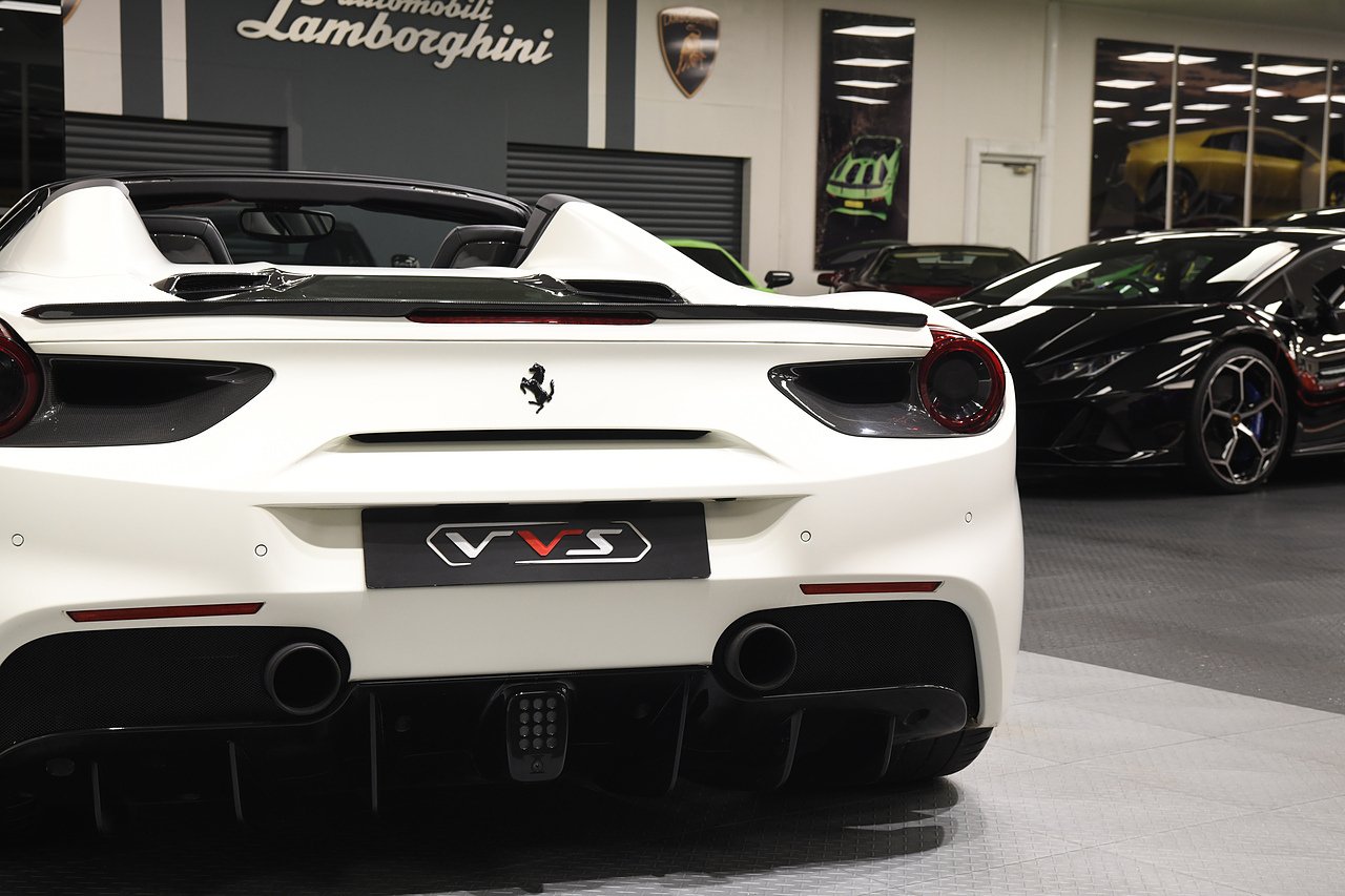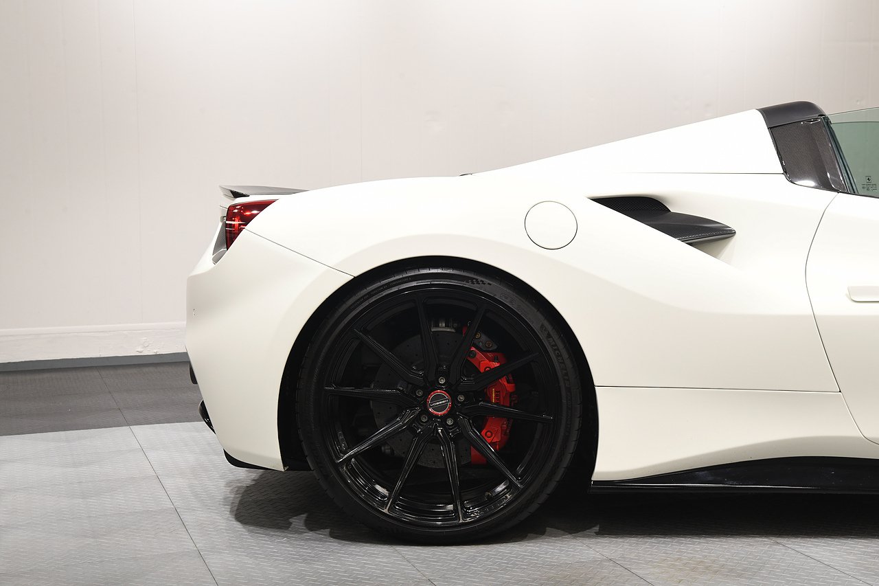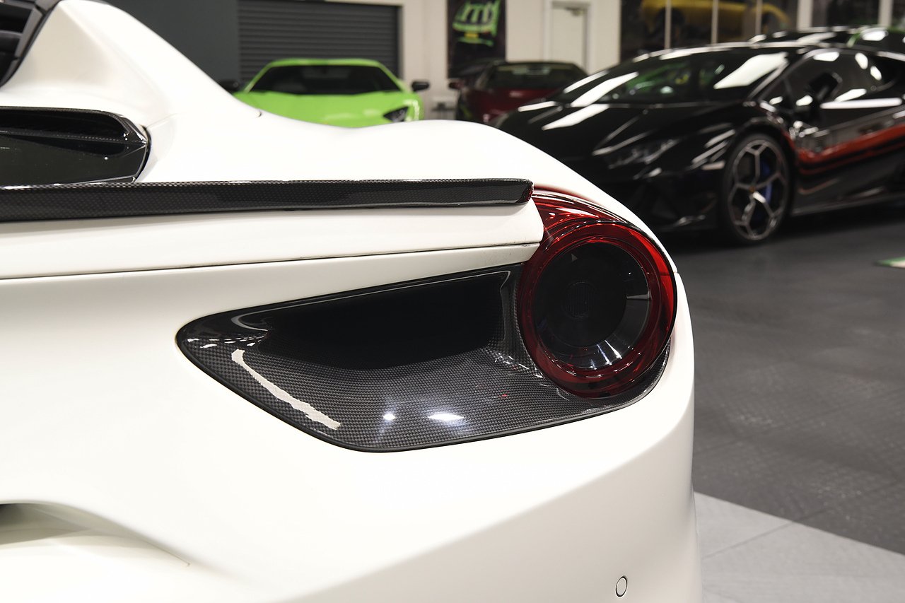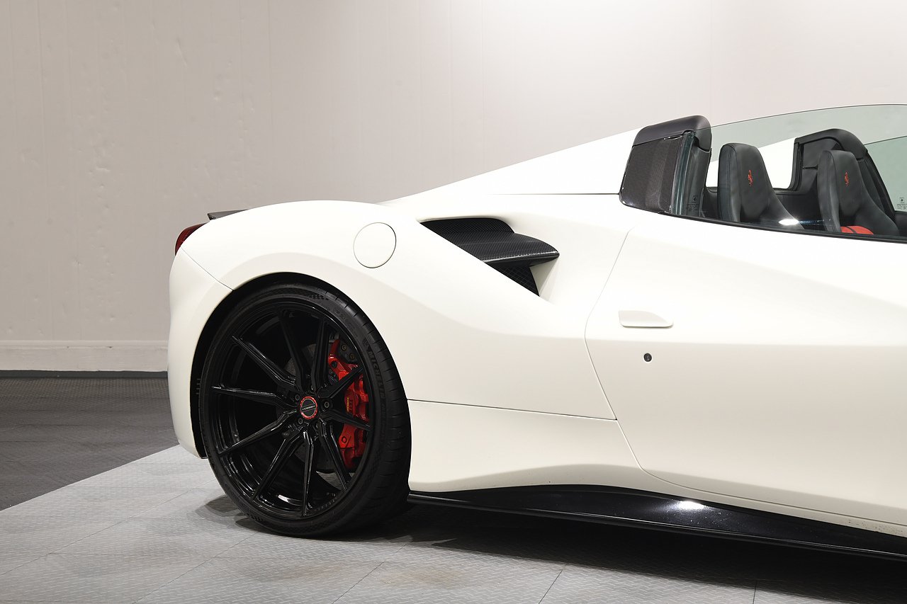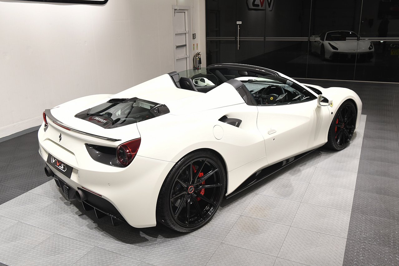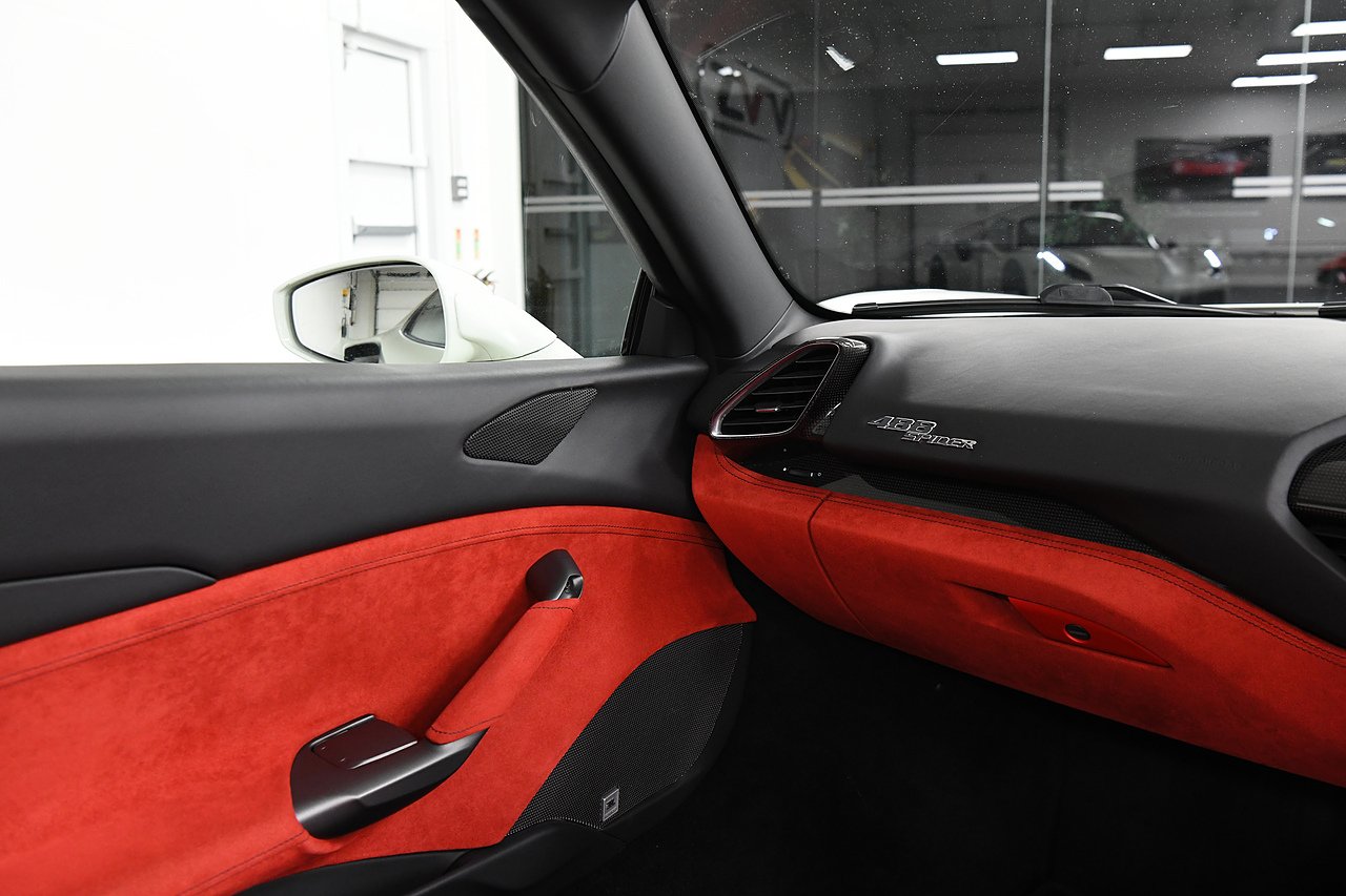 VVS are pleased to offer this 2018 Ferrari 488 Spider presented in Bianco Avus with Two tone Nero and Rosso leather/alcantara interior. This example is optioned with Carbon fibre race seats, Rosso cavallinos stitched into headrests, White rev counter, JBL sound upgrade, Carbon fibre driving zone with LEDS, Carbon fibre central bridge, Carbon fibre paddles, Carbon fibre dash inserts, Front parking sensors, rear view camera, Front lifting system, Scuderia shields, Outer Carbon fibre B-pillars, Carbon fibre rear air ducts, sports exhaust pipes finished in matte black, Capristo glass engine cover, Capristo exhaust with De cats, Novitec rear lip spoiler, Full stealth PPF, Rosso brake callipers, 21"/20" Vossen alloy wheels and full Ferrari service history from new.