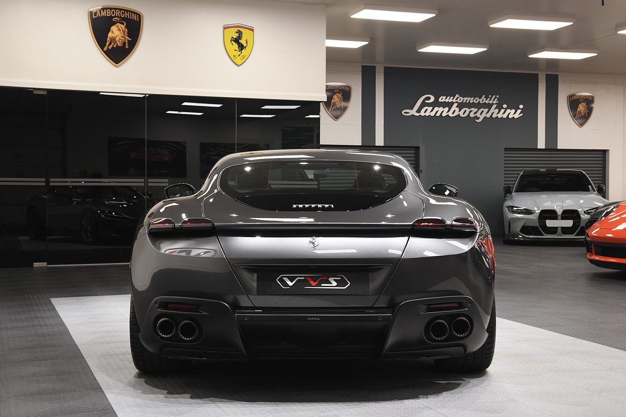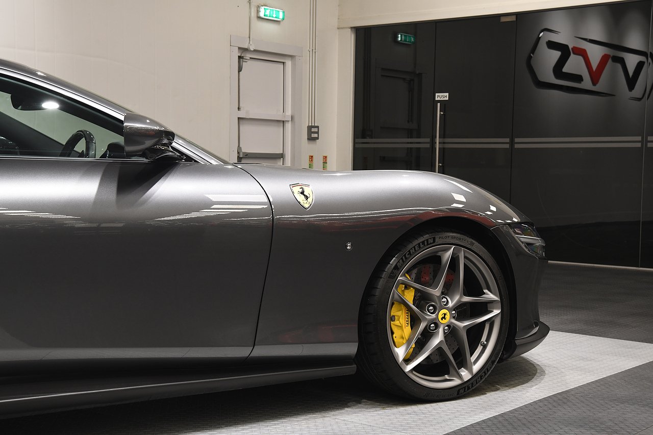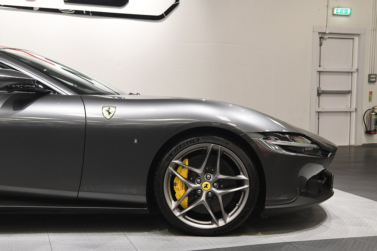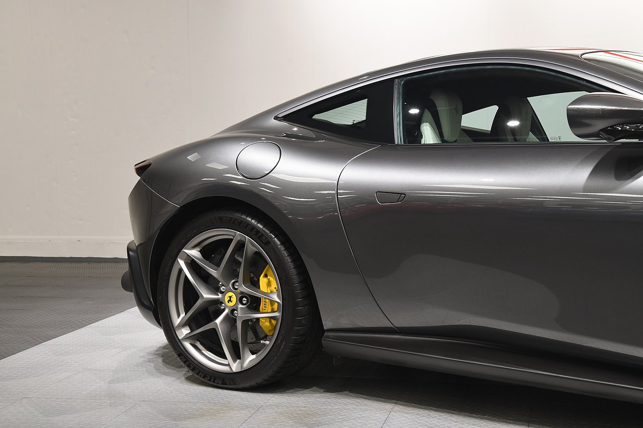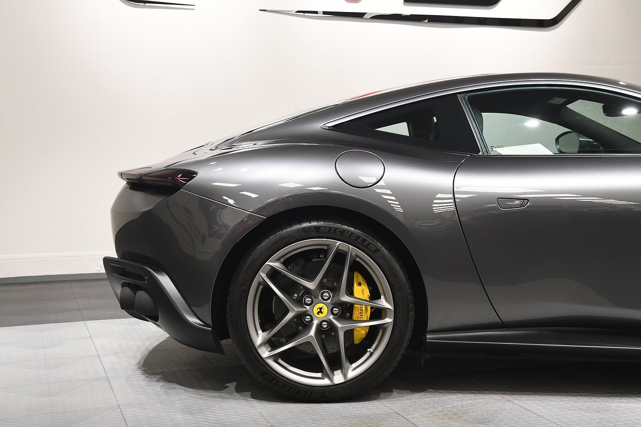 VVS are pleased to offer this 2021 Ferrari Roma presented in Grigio Silverstone with Semianilina leather interior and Grigio Scuro stitching. This example is optioned with Full electric Daytona seats, Cavallino stitched in headrests, Carbon fibre steering wheel with LED's, Heated steering wheel, Surround view cameras, Adaptive front light system, Apple car play, Wireless smartphone charger, Passenger display, JBL sound system, Aluminium kick plate, Exterior sill kick in Carbon, Scuderia shields, Black taipipe tips, Complete ADAS package, Dual mode Magna-ride suspension, Yellow brake callipers, Matte grey 5 twin spoke alloys and a full Ferrari service history including the balance of the extended Power15 warranty until August 2026.
