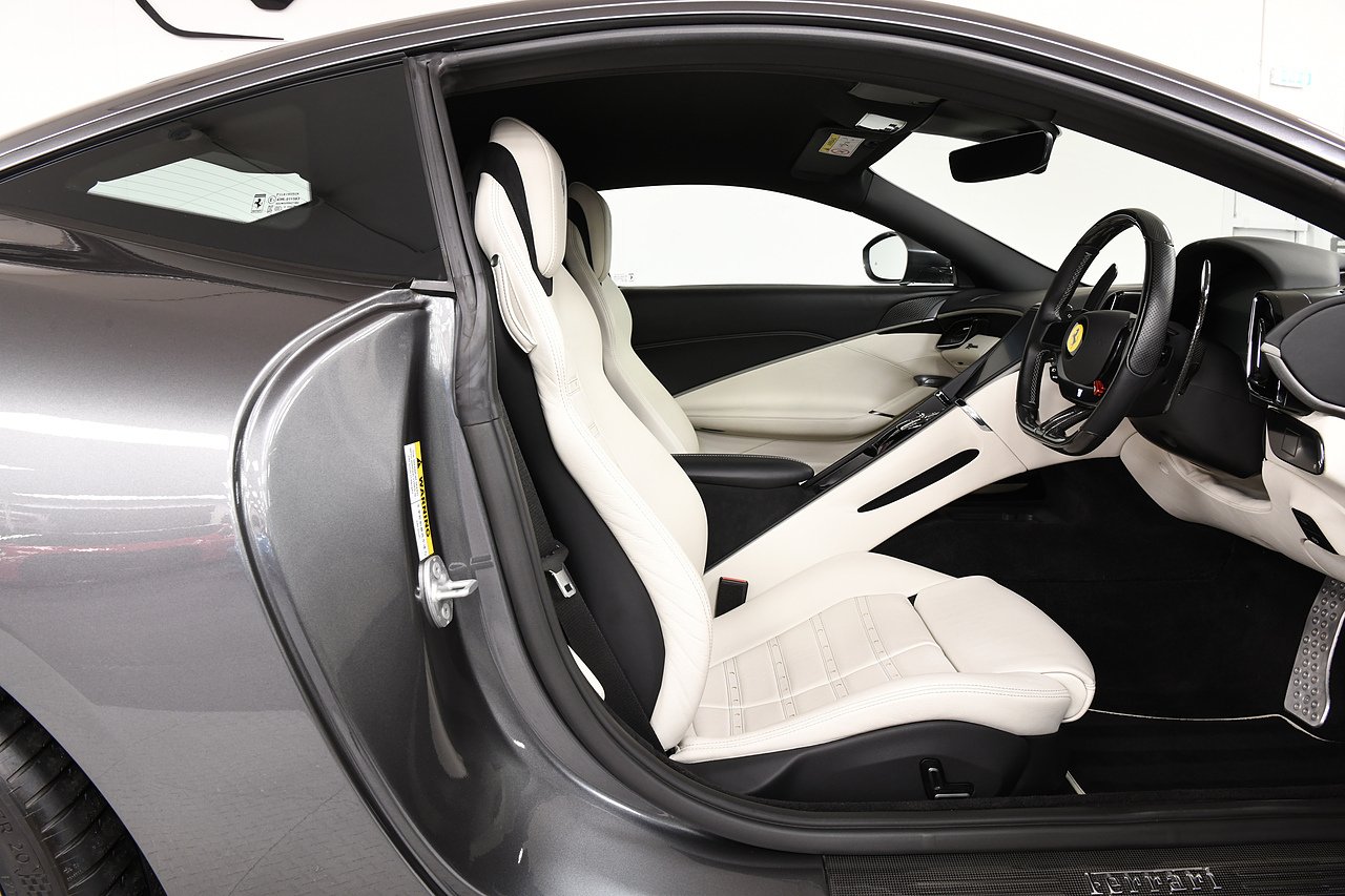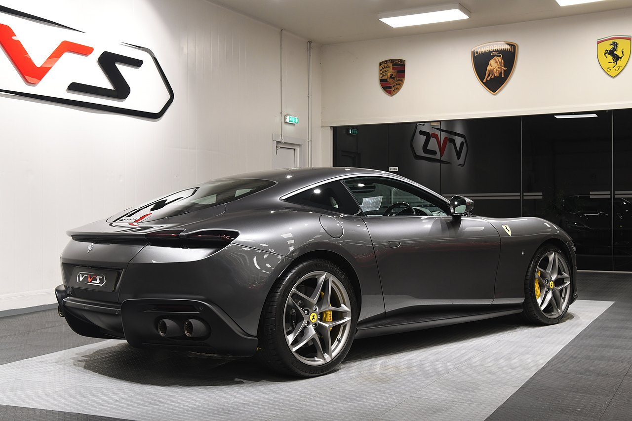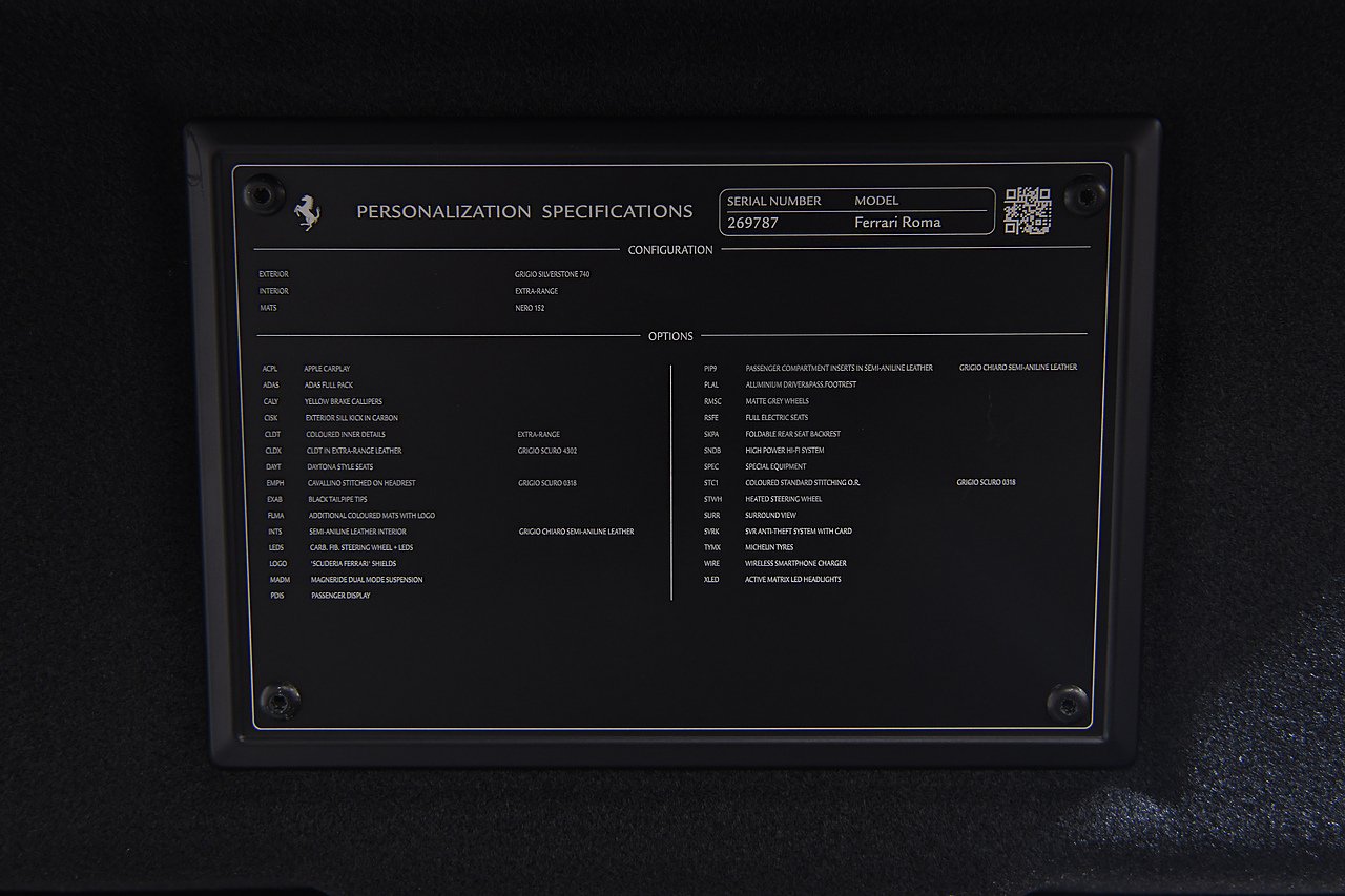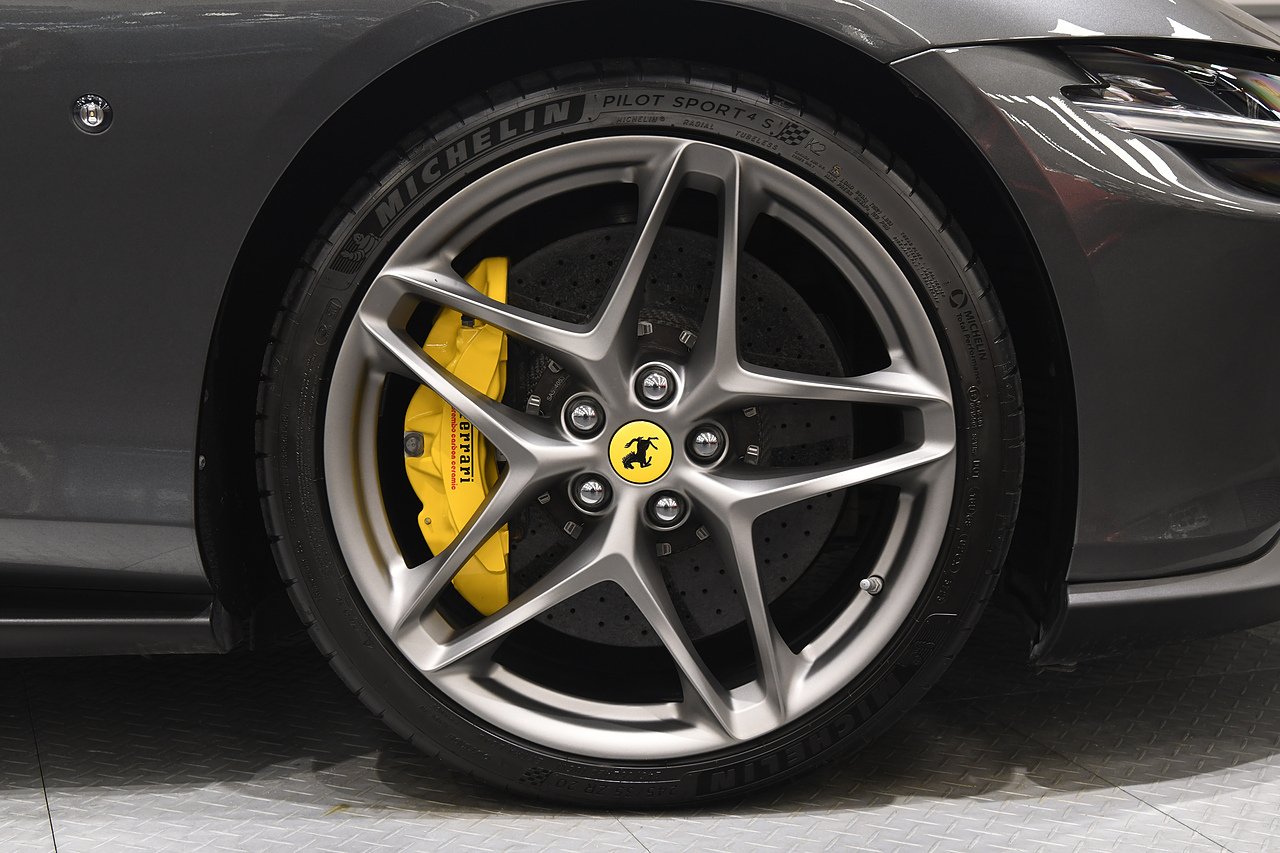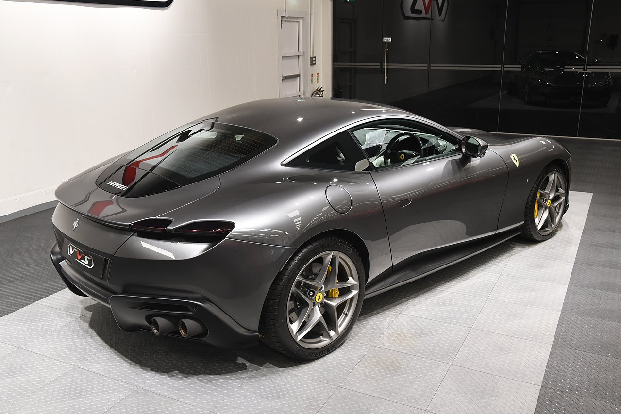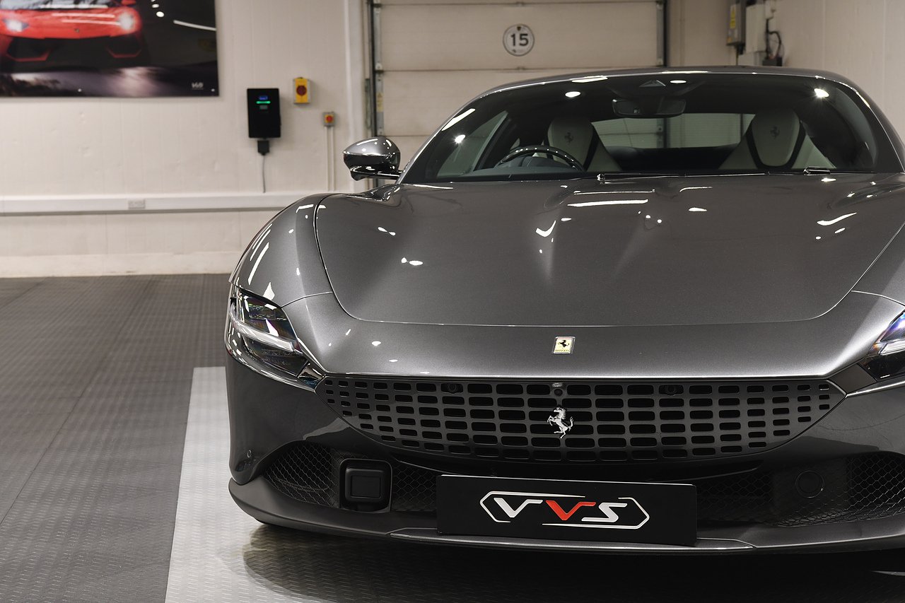 VVS are pleased to offer this 2021 Ferrari Roma presented in Grigio Silverstone with Semianilina leather interior and Grigio Scuro stitching. This example is optioned with Full electric Daytona seats, Cavallino stitched in headrests, Carbon fibre steering wheel with LED's, Heated steering wheel, Surround view cameras, Adaptive front light system, Apple car play, Wireless smartphone charger, Passenger display, JBL sound system, Aluminium kick plate, Exterior sill kick in Carbon, Scuderia shields, Black taipipe tips, Complete ADAS package, Dual mode Magna-ride suspension, Yellow brake callipers, Matte grey 5 twin spoke alloys and a full Ferrari service history including the balance of the extended Power15 warranty until August 2026.