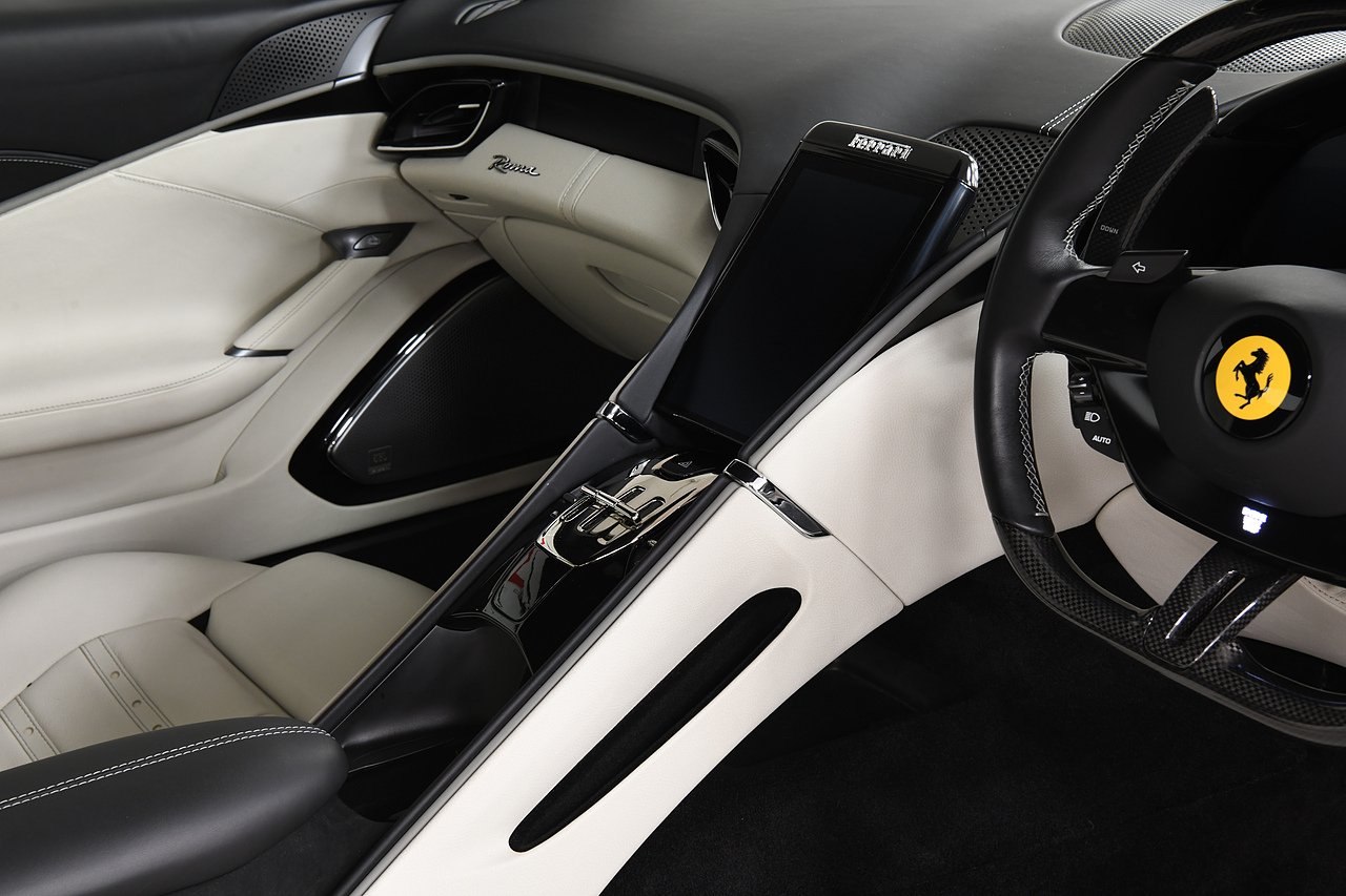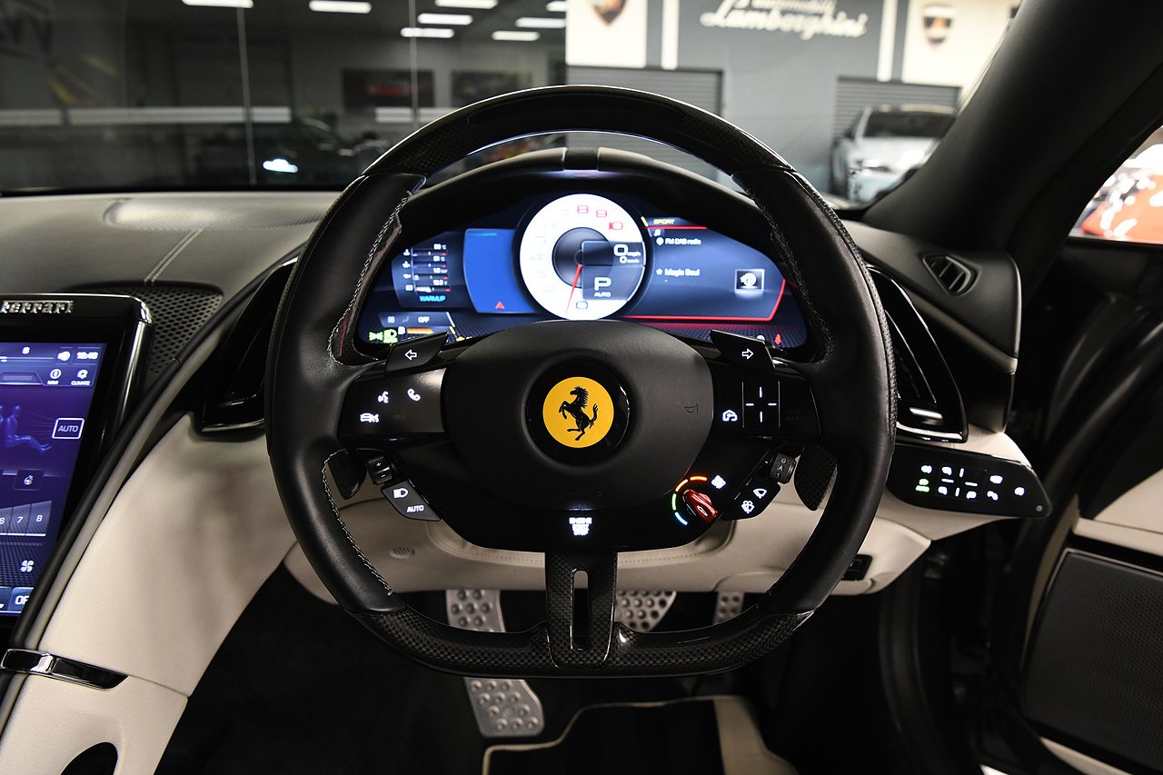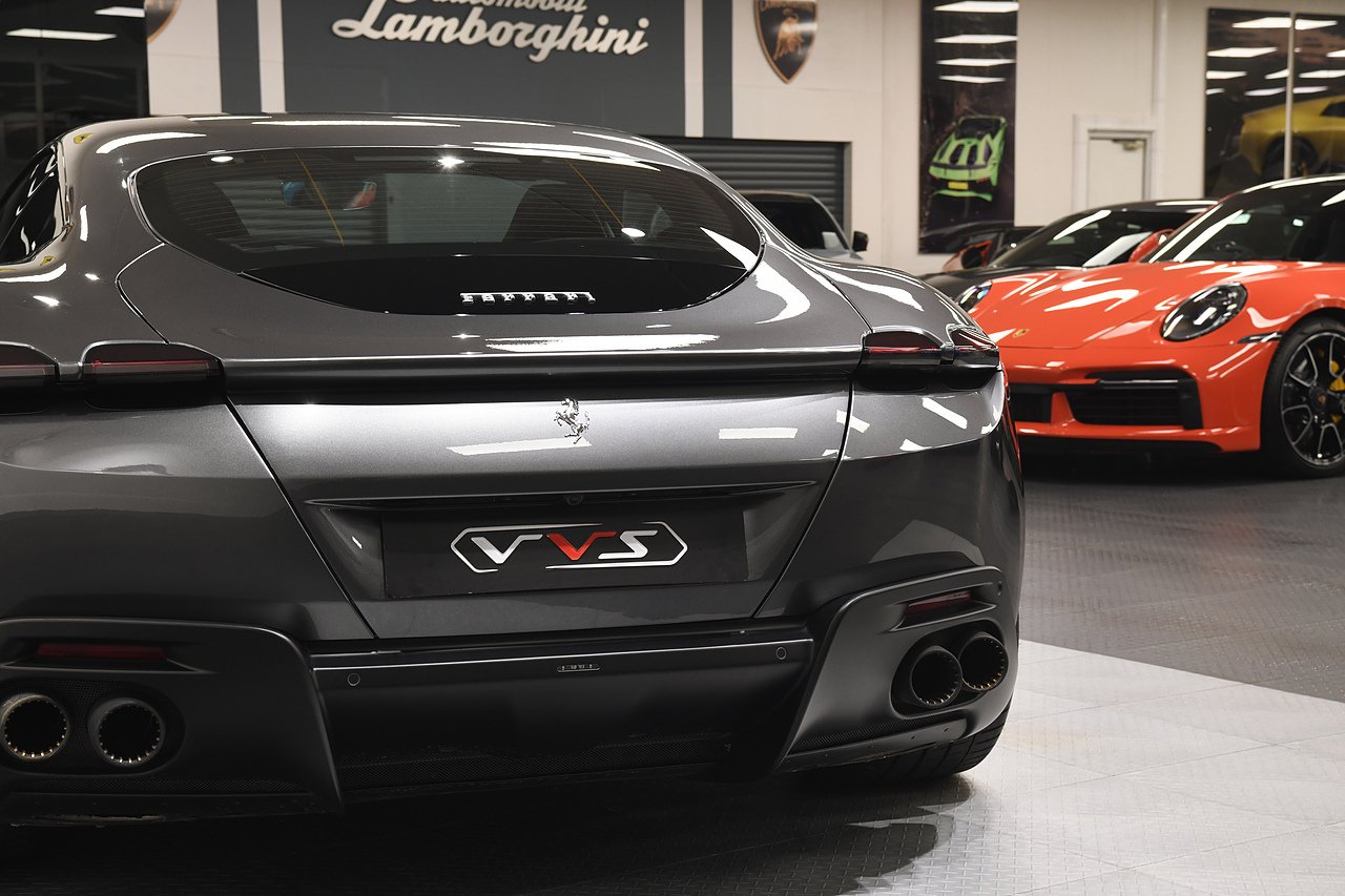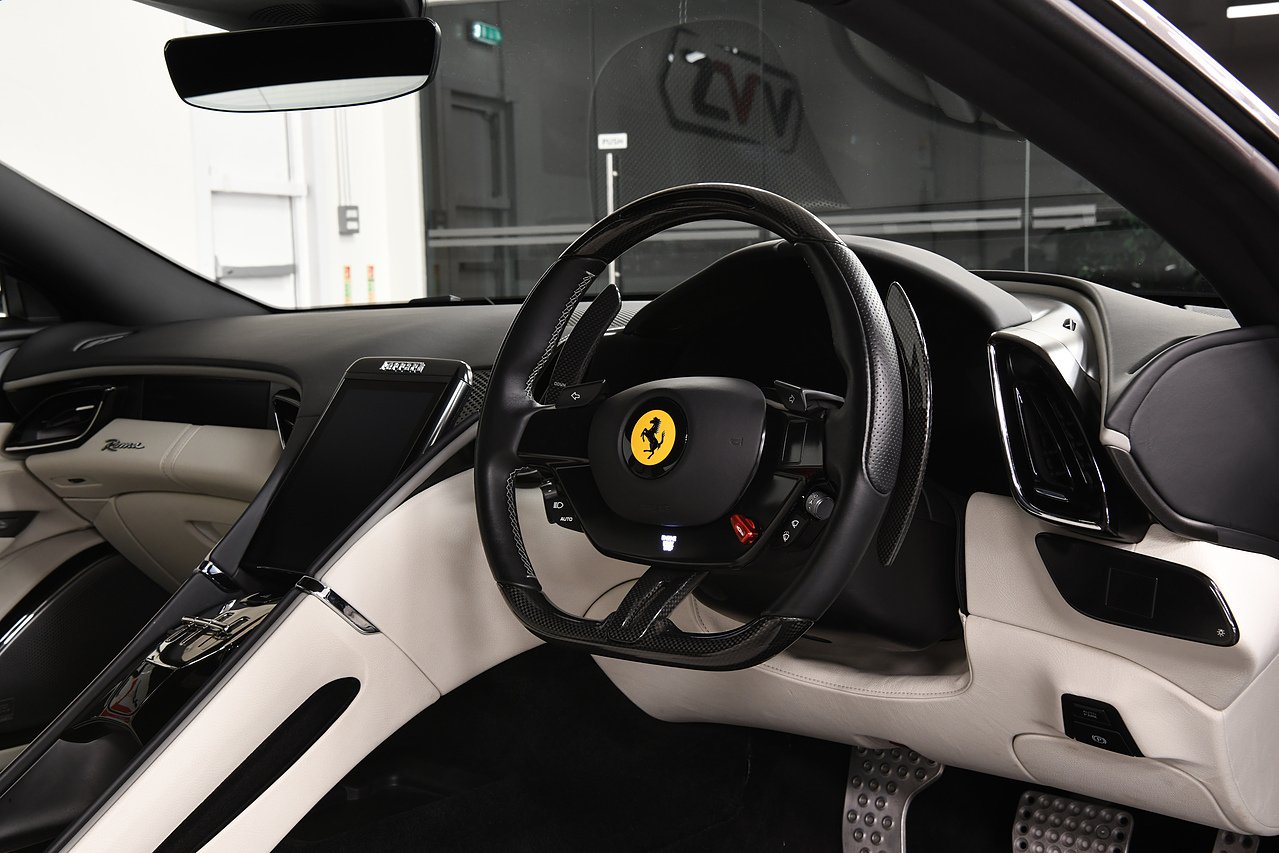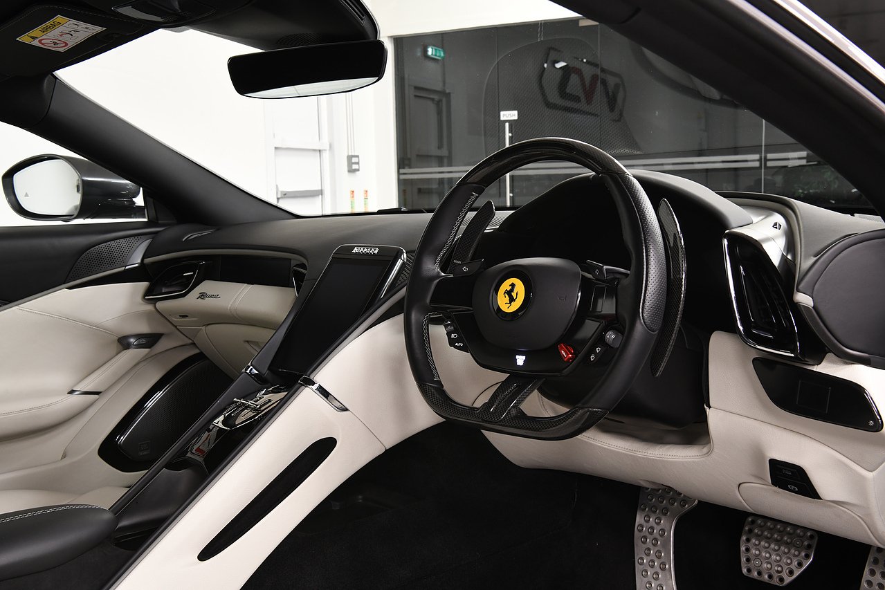 VVS are pleased to offer this 2021 Ferrari Roma presented in Grigio Silverstone with Semianilina leather interior and Grigio Scuro stitching. This example is optioned with Full electric Daytona seats, Cavallino stitched in headrests, Carbon fibre steering wheel with LED's, Heated steering wheel, Surround view cameras, Adaptive front light system, Apple car play, Wireless smartphone charger, Passenger display, JBL sound system, Aluminium kick plate, Exterior sill kick in Carbon, Scuderia shields, Black taipipe tips, Complete ADAS package, Dual mode Magna-ride suspension, Yellow brake callipers, Matte grey 5 twin spoke alloys and a full Ferrari service history including the balance of the extended Power15 warranty until August 2026.
