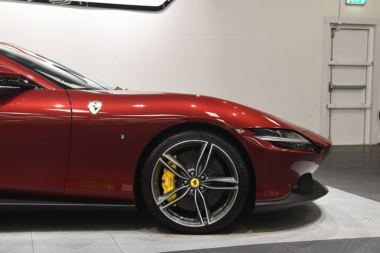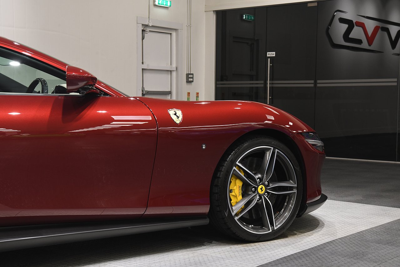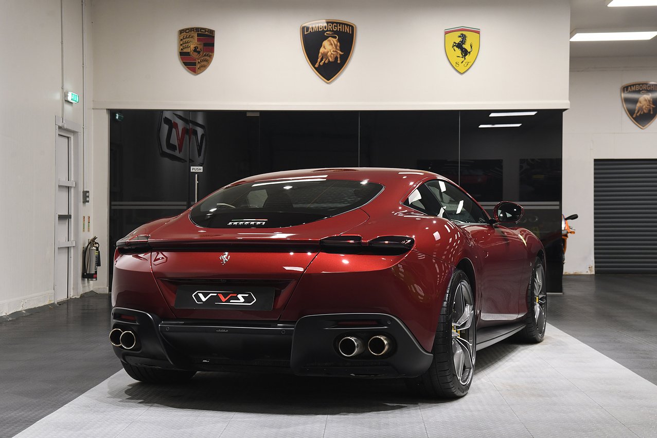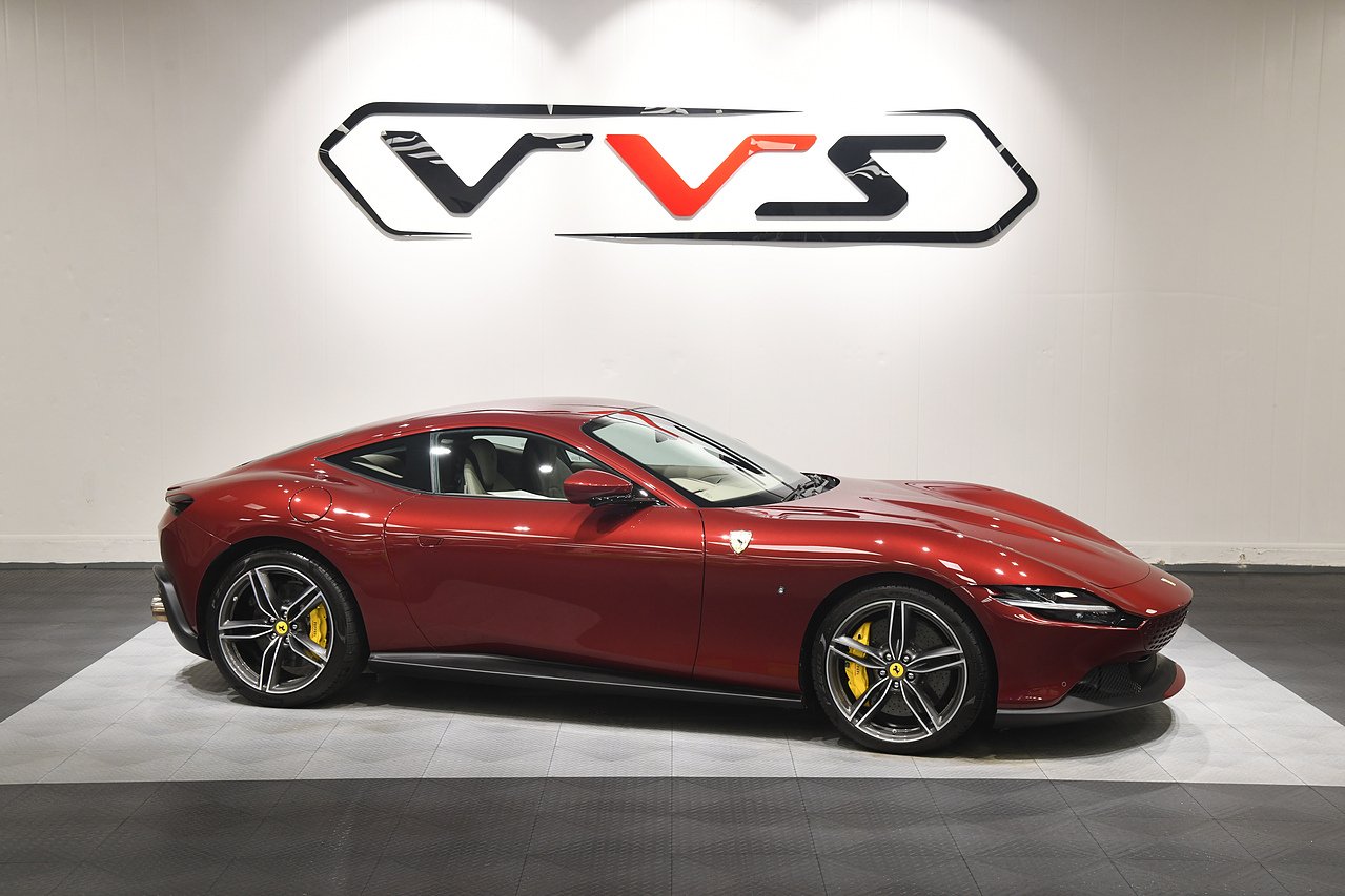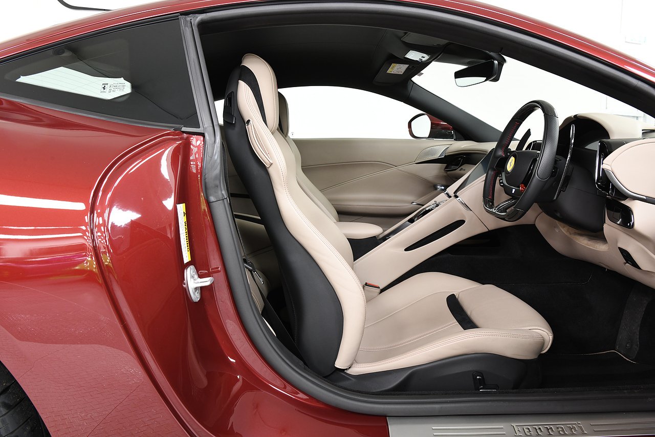 VVS are pleased to offer this 2023 Ferrari Roma finished in Rubino Micalizzato over Tortora leather interior. This example is equipped with Fully electric and heated seats, Cavallino stitched on headrests in Bordeaux, Additional coloured mats with logo, Carbon fibre steering wheel with LED's, Magneride dual mode suspension, Electrochromic rear view mirror, Scuderia shields, Dedication plate in silver, Atelier car, Leather passenger compartment inserts in Tortora, Smartphone interface, JBL surround sound system, Bordeuax stitching, Surround viw cameras, Yellow brake callipers, Diamond polished forged wheels and comes with full Ferrari history from new and the remainder of manufactures warranty.