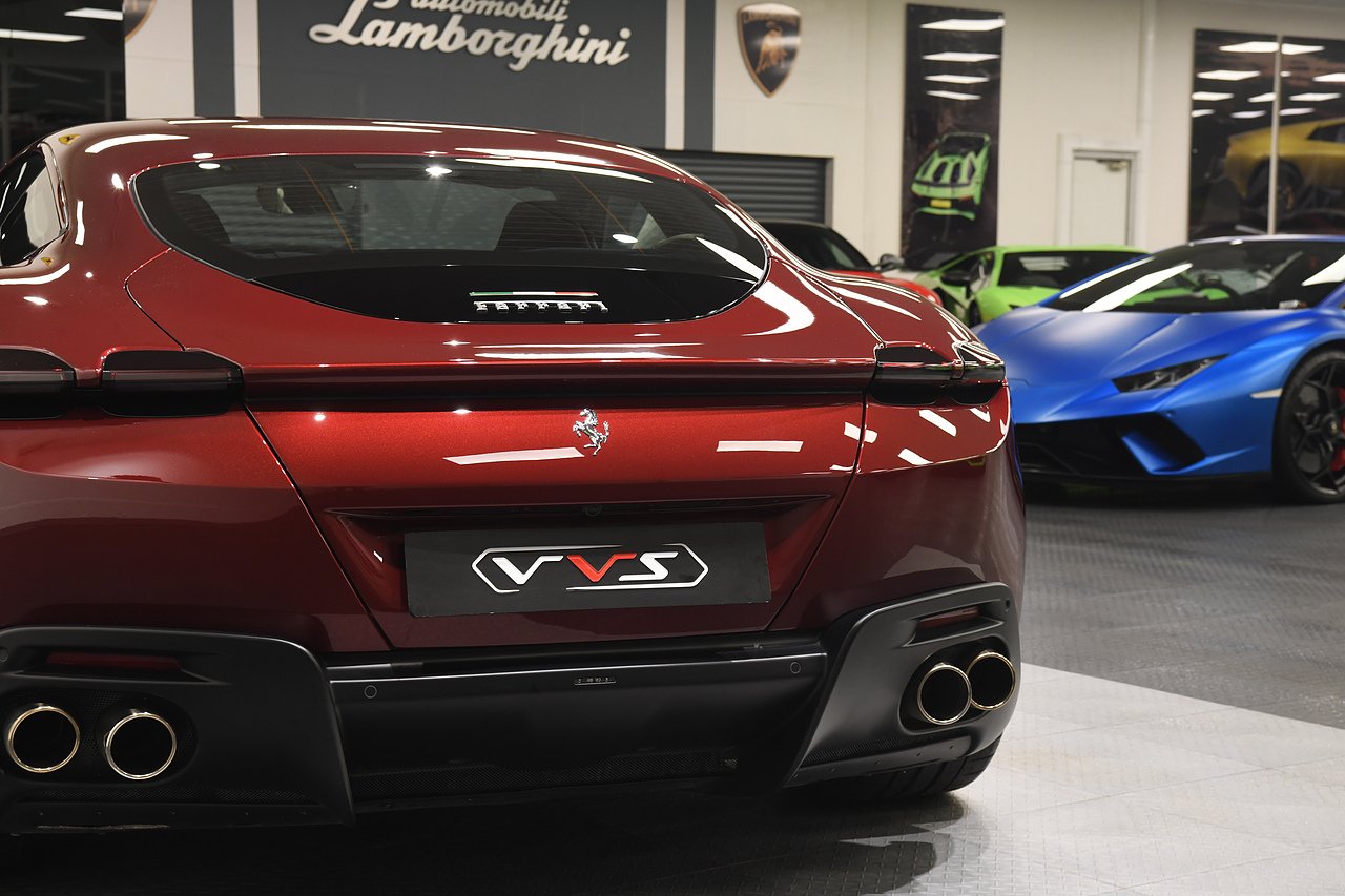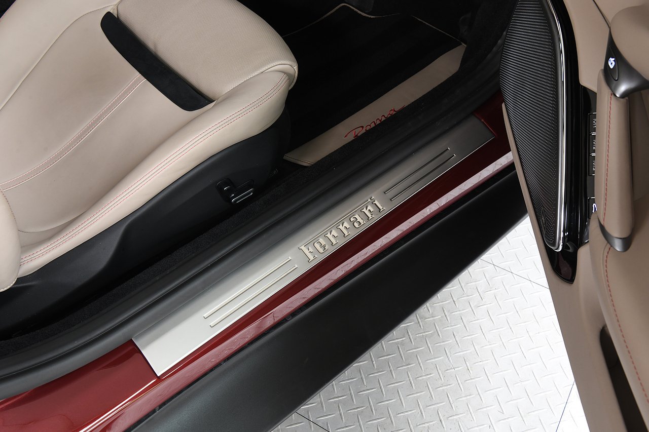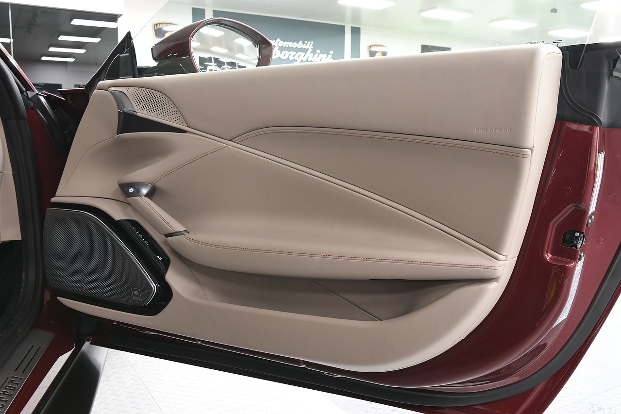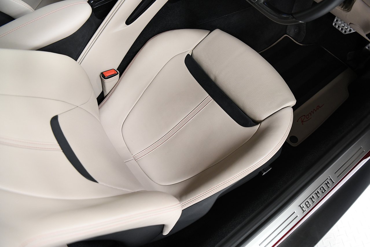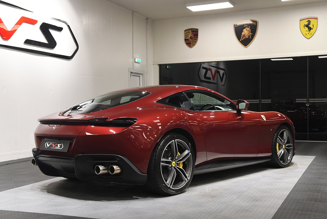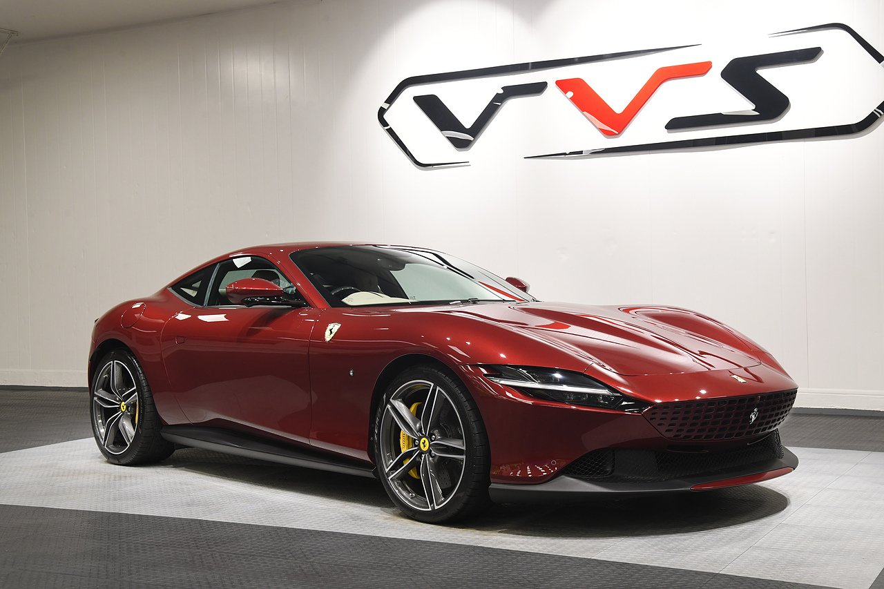 VVS are pleased to offer this 2023 Ferrari Roma finished in Rubino Micalizzato over Tortora leather interior. This example is equipped with Fully electric and heated seats, Cavallino stitched on headrests in Bordeaux, Additional coloured mats with logo, Carbon fibre steering wheel with LED's, Magneride dual mode suspension, Electrochromic rear view mirror, Scuderia shields, Dedication plate in silver, Atelier car, Leather passenger compartment inserts in Tortora, Smartphone interface, JBL surround sound system, Bordeuax stitching, Surround viw cameras, Yellow brake callipers, Diamond polished forged wheels and comes with full Ferrari history from new and the remainder of manufactures warranty.