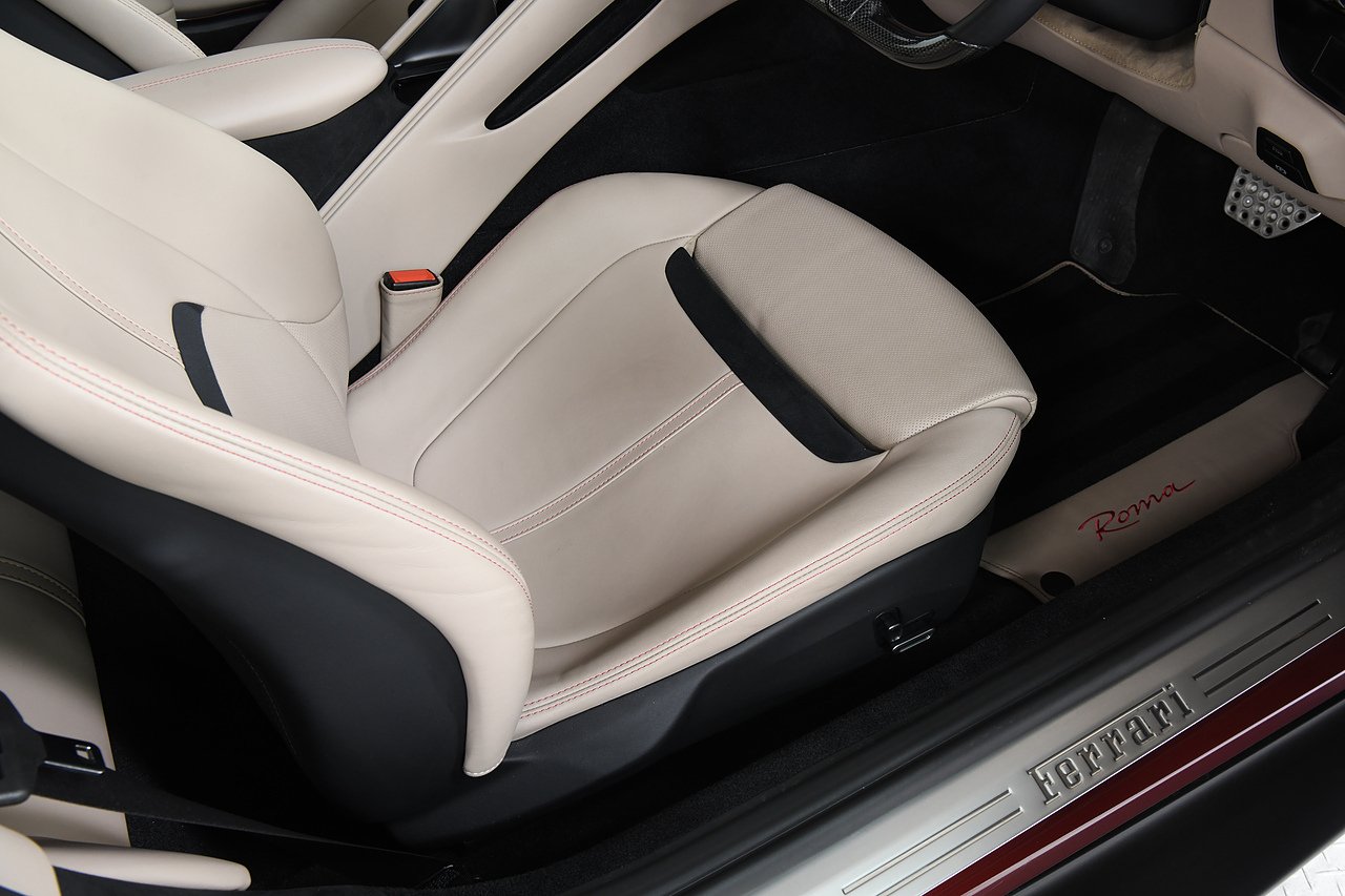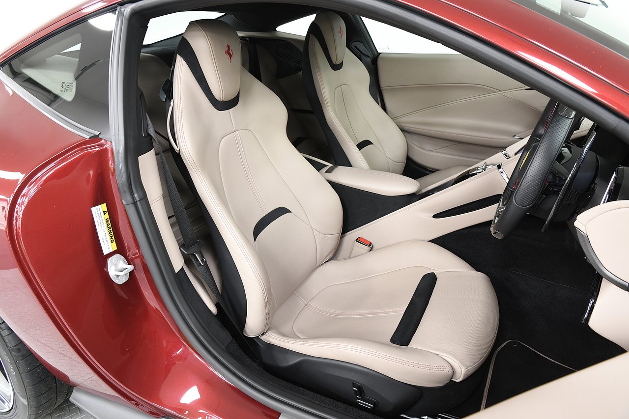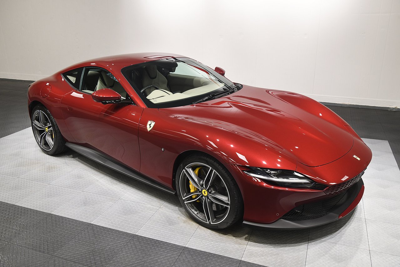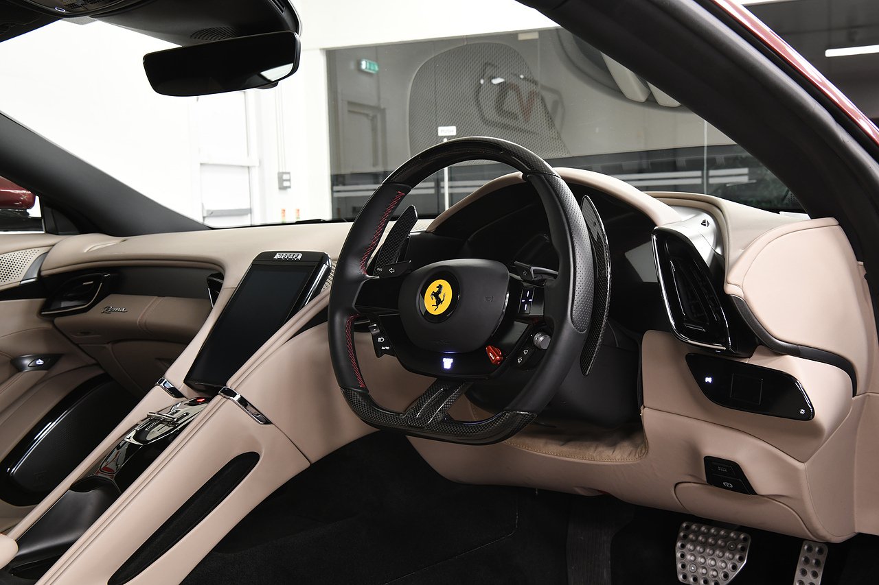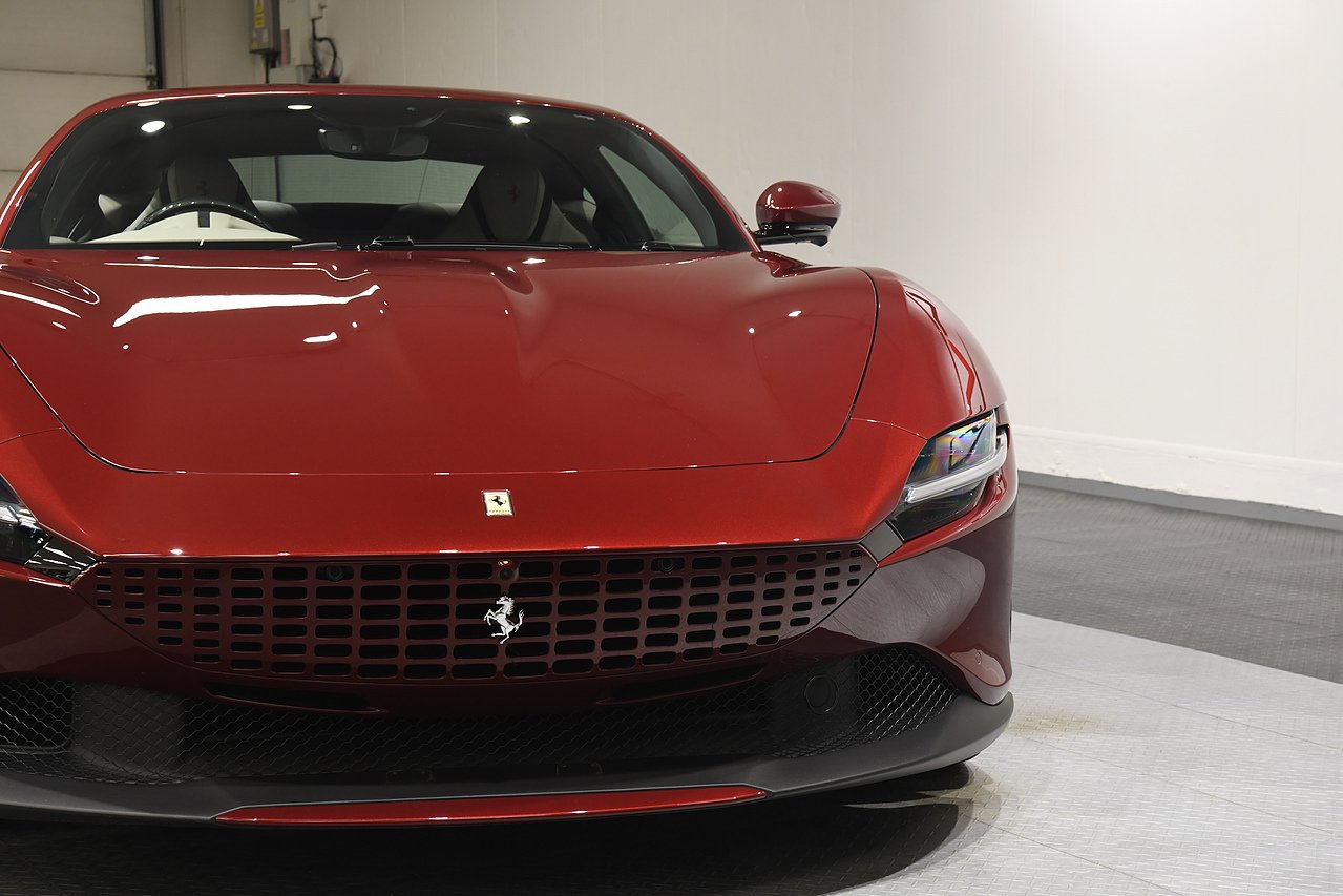 VVS are pleased to offer this 2023 Ferrari Roma finished in Rubino Micalizzato over Tortora leather interior. This example is equipped with Fully electric and heated seats, Cavallino stitched on headrests in Bordeaux, Additional coloured mats with logo, Carbon fibre steering wheel with LED's, Magneride dual mode suspension, Electrochromic rear view mirror, Scuderia shields, Dedication plate in silver, Atelier car, Leather passenger compartment inserts in Tortora, Smartphone interface, JBL surround sound system, Bordeuax stitching, Surround viw cameras, Yellow brake callipers, Diamond polished forged wheels and comes with full Ferrari history from new and the remainder of manufactures warranty.