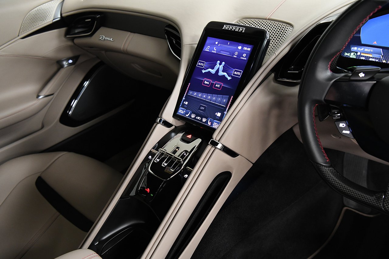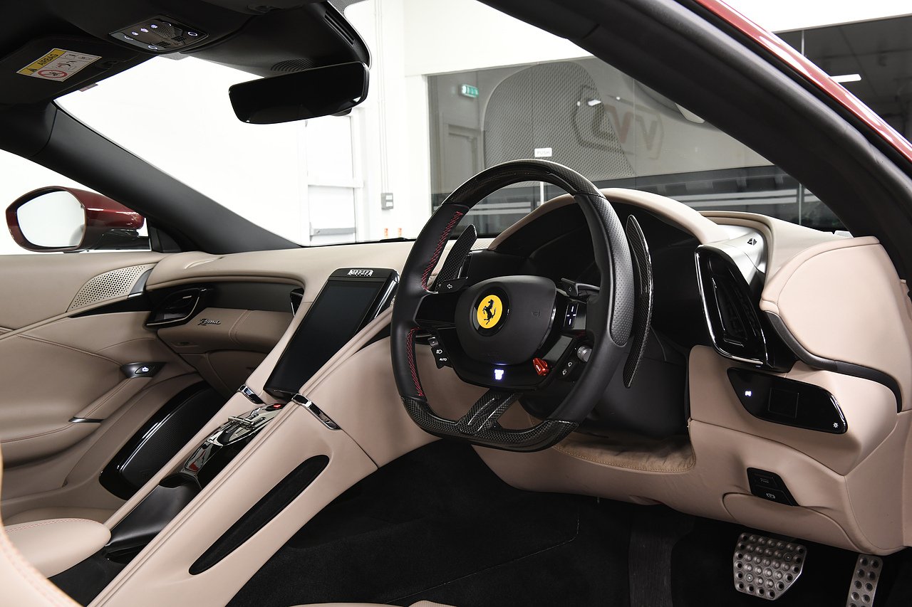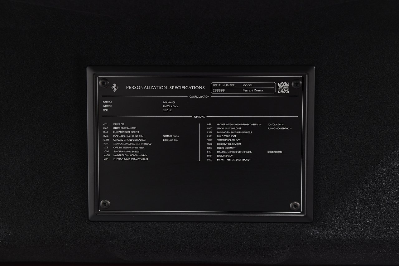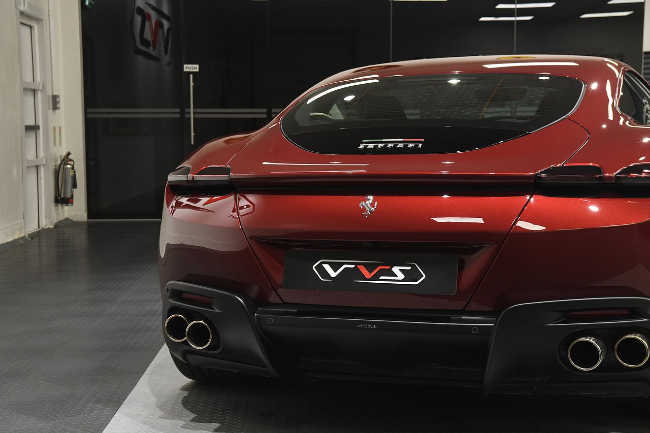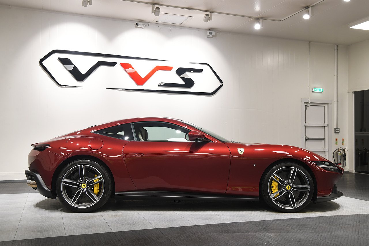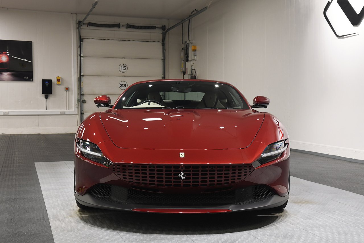 VVS are pleased to offer this 2023 Ferrari Roma finished in Rubino Micalizzato over Tortora leather interior. This example is equipped with Fully electric and heated seats, Cavallino stitched on headrests in Bordeaux, Additional coloured mats with logo, Carbon fibre steering wheel with LED's, Magneride dual mode suspension, Electrochromic rear view mirror, Scuderia shields, Dedication plate in silver, Atelier car, Leather passenger compartment inserts in Tortora, Smartphone interface, JBL surround sound system, Bordeuax stitching, Surround viw cameras, Yellow brake callipers, Diamond polished forged wheels and comes with full Ferrari history from new and the remainder of manufactures warranty.