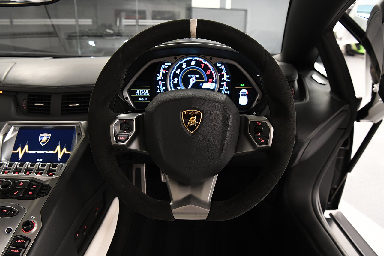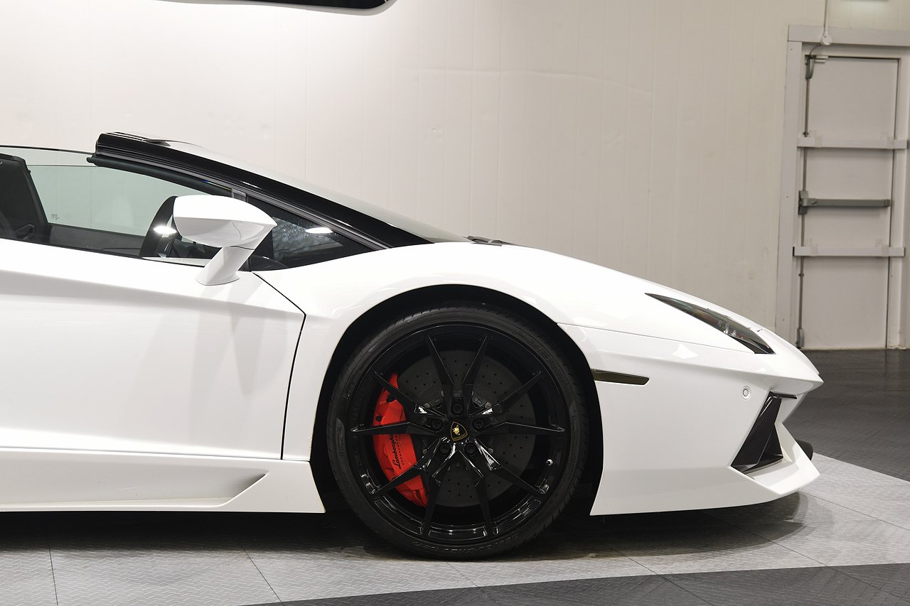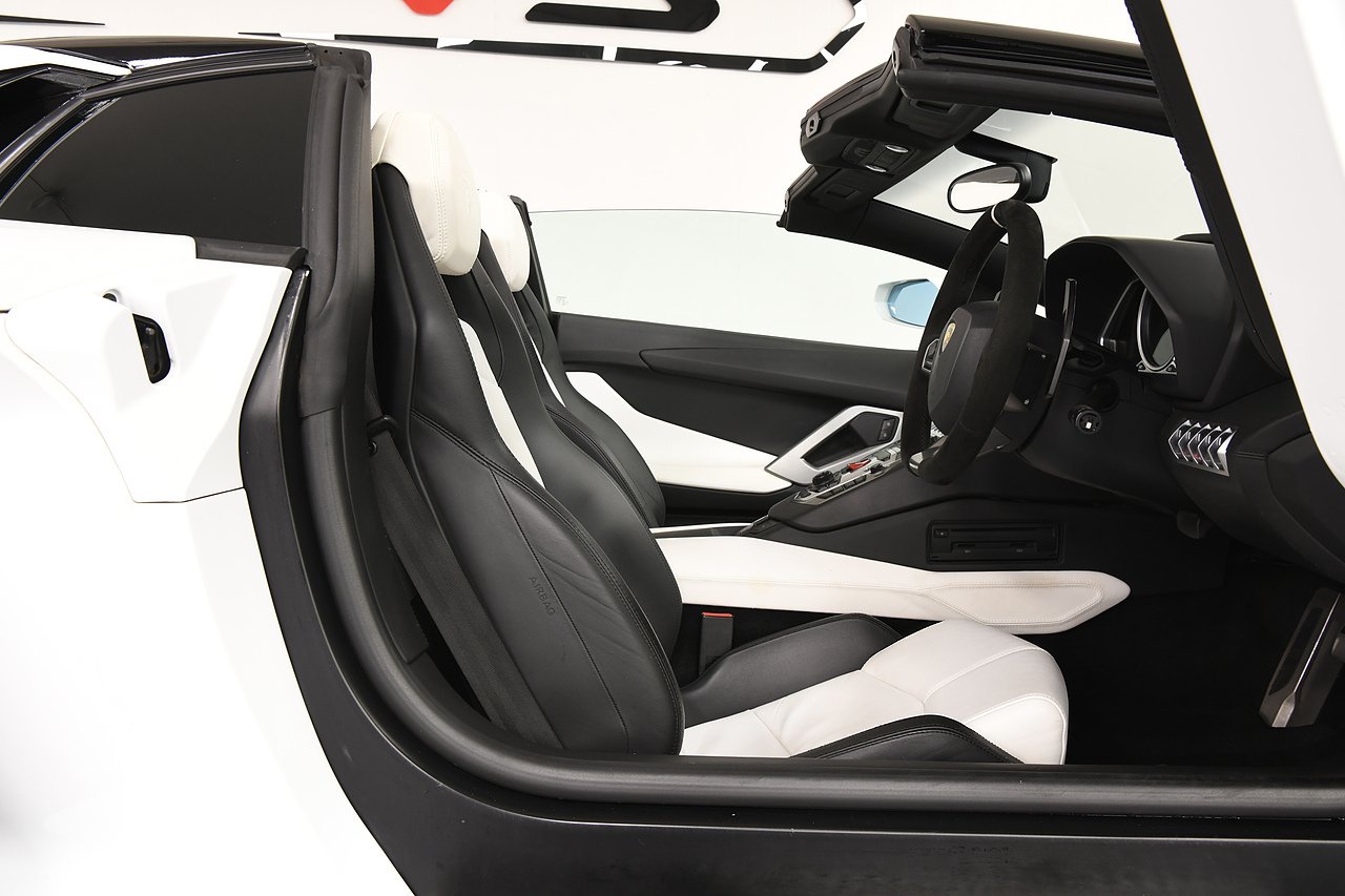 VVS are pleased to offer this 2013 Lamborghini Aventador LP700-4 Roadster presented in Bianco Isi with Bi Colour Nero Ade and Bianco full leather interior. This is a full specification car including Full electric and heated seats, Alacantara steering wheel, Branding package, Sat nav, Sensonum premium sound system, Lifting system, Transparent engine cover, Carbon fibre T-piece, Rosso brake callipers, 20/21" Dionne alloy wheels finished in gloss black and comes with a comprehensive service history from new and will be serviced prior to sale.