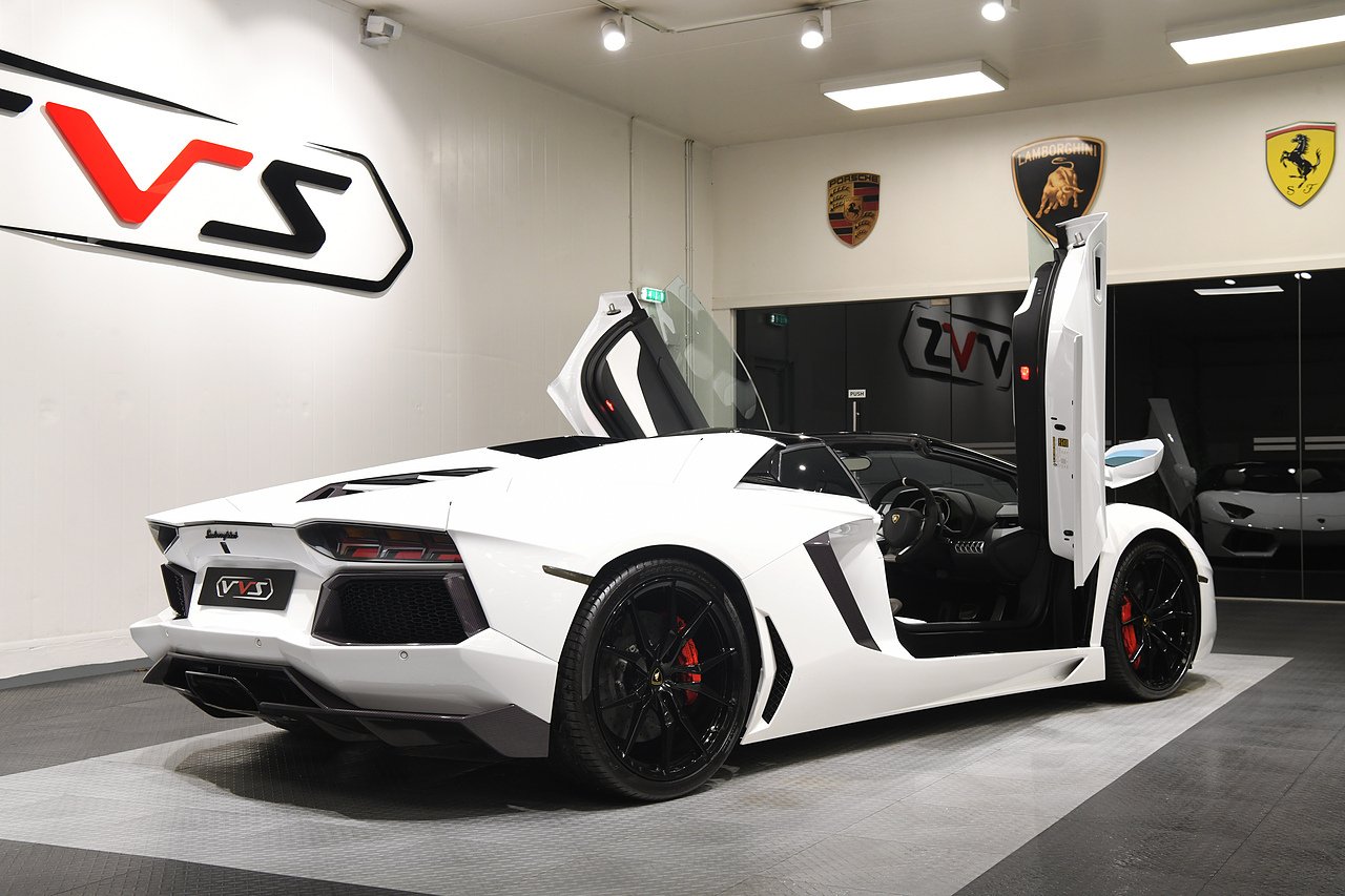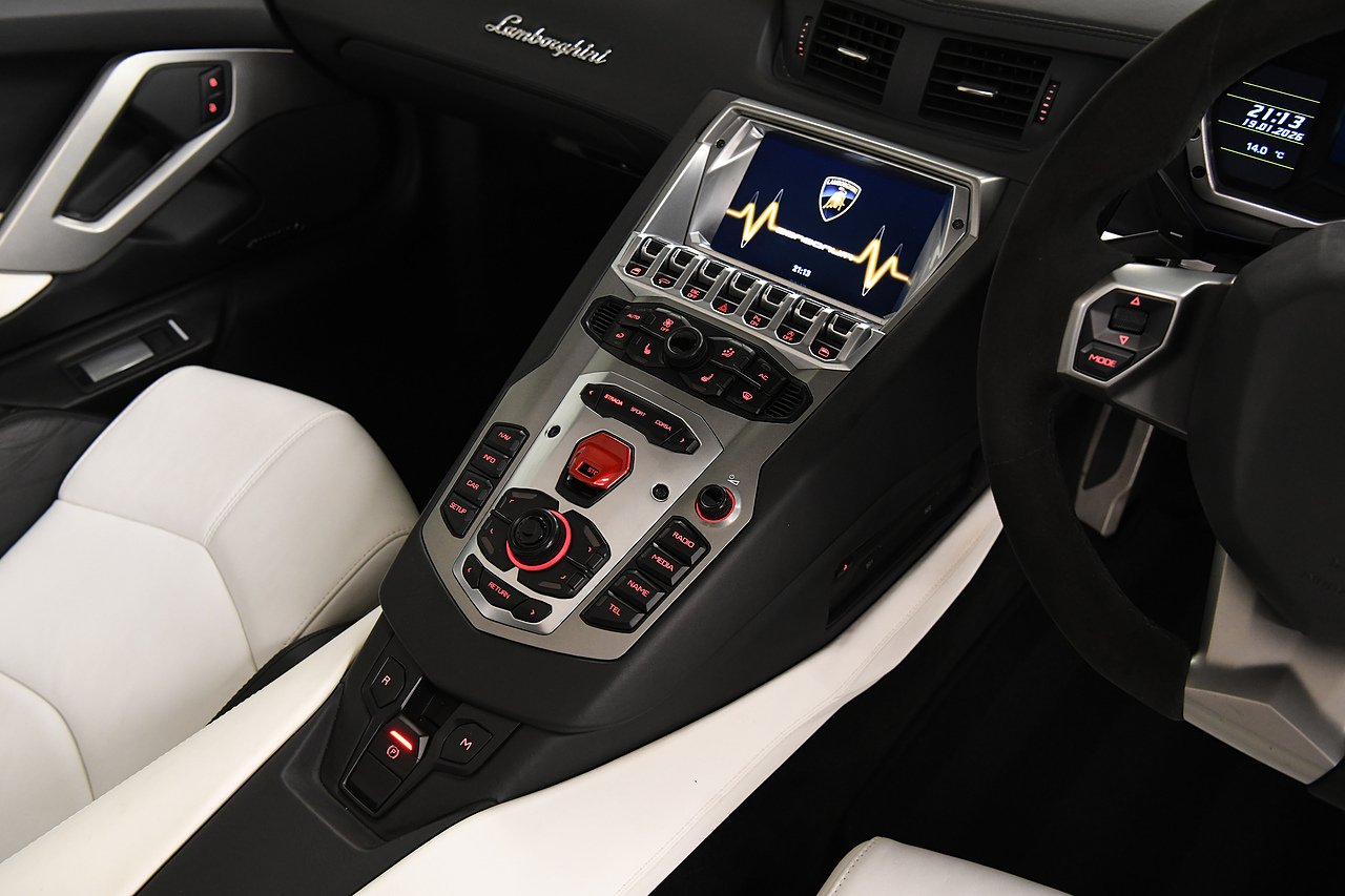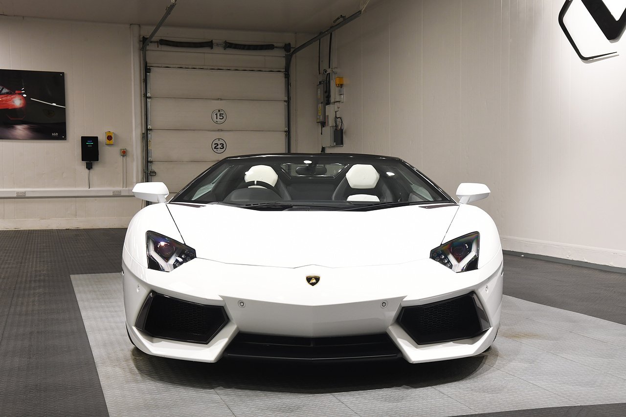 VVS are pleased to offer this 2013 Lamborghini Aventador LP700-4 Roadster presented in Bianco Isi with Bi Colour Nero Ade and Bianco full leather interior. This is a full specification car including Full electric and heated seats, Alacantara steering wheel, Branding package, Sat nav, Sensonum premium sound system, Lifting system, Transparent engine cover, Carbon fibre T-piece, Rosso brake callipers, 20/21" Dionne alloy wheels finished in gloss black and comes with a comprehensive service history from new and will be serviced prior to sale.