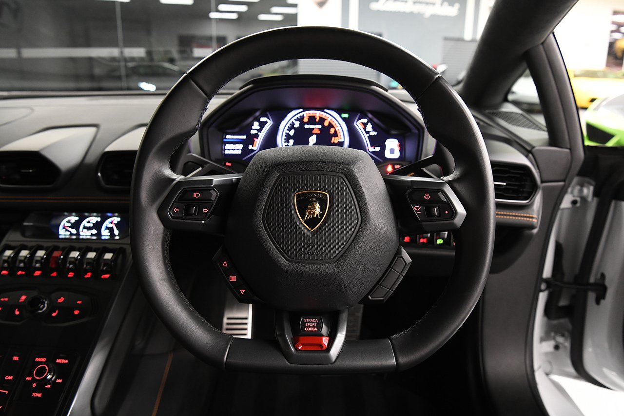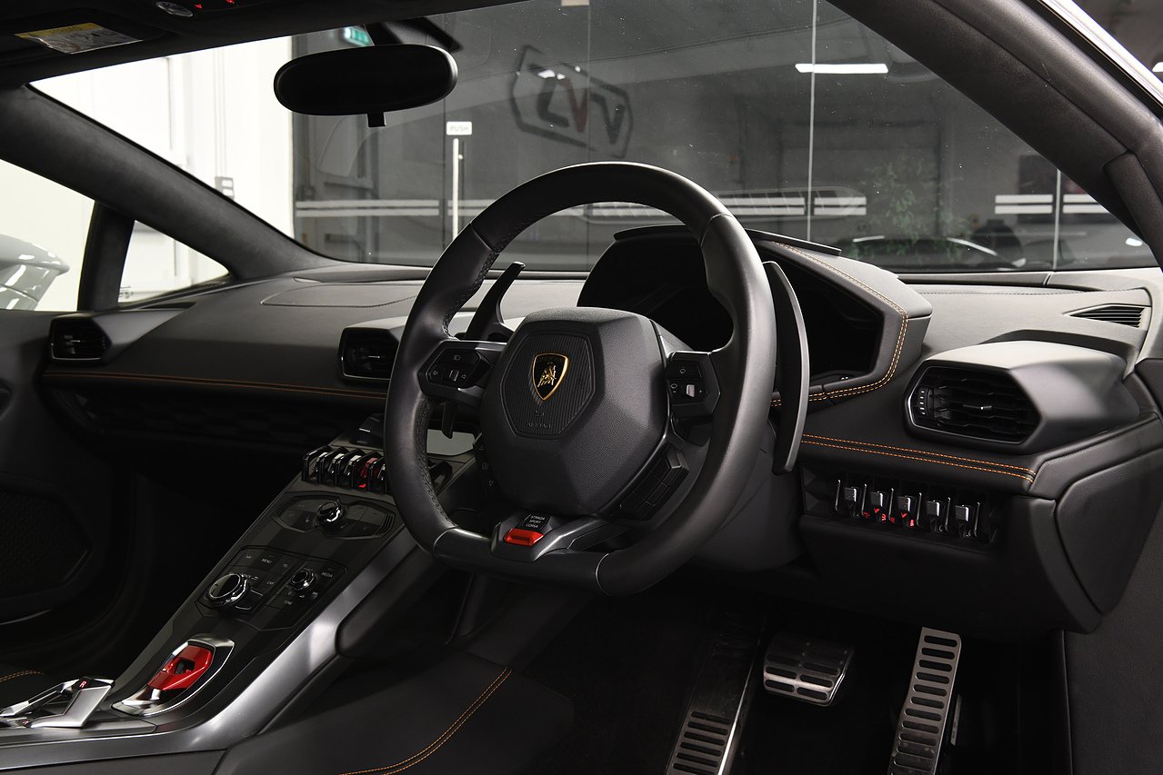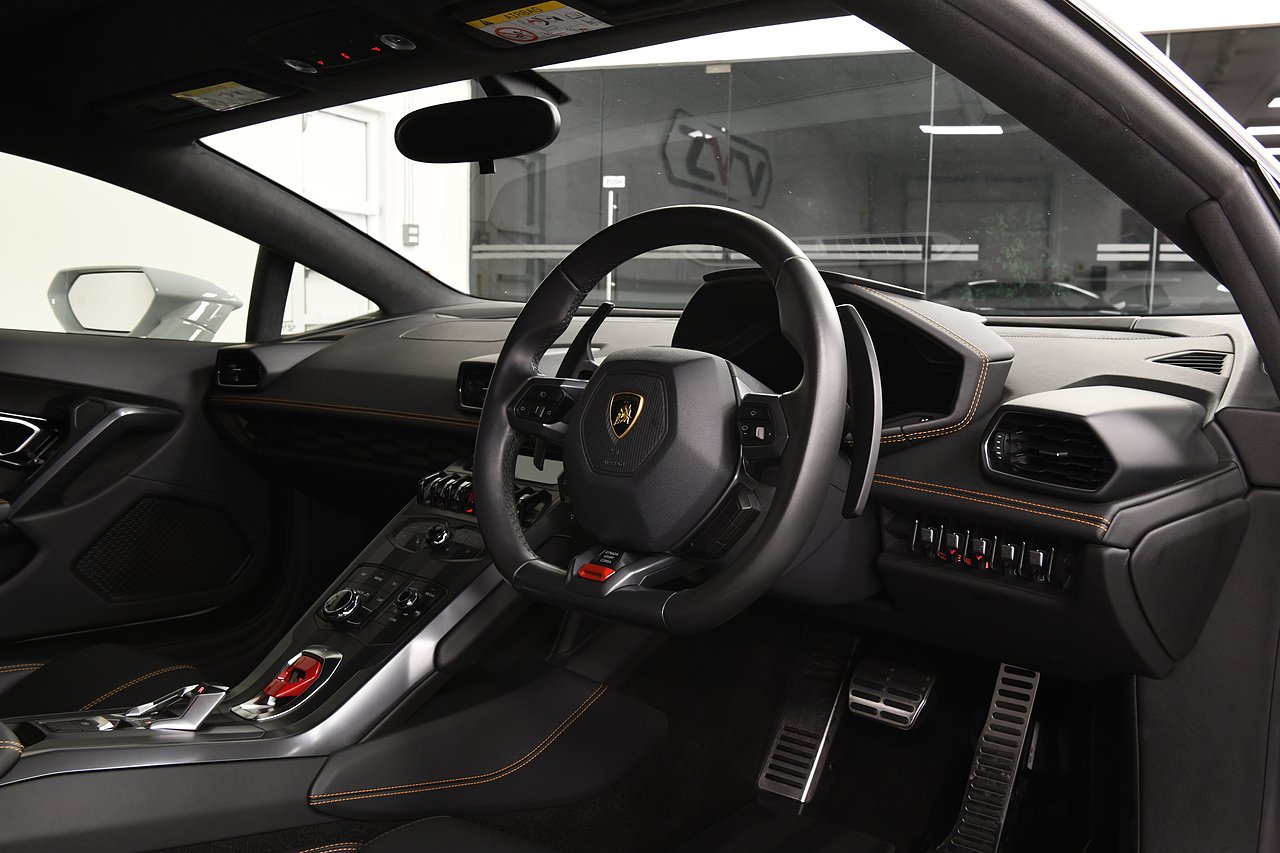 VVS are delighted to offer this 2015 Lamborghini Huracan LP610-4 Coupe finished in Bianco Icarus over Nero leather interior with Arancio stitching. This example is equipped with Fully electric and heated seats, Front lifting system, Front and rear parking sesnors, Rear parking camera, Alcantara headlining, Transparent engine cover, Forged carbon engine bay, Full PPF, Arancio brake callipers, 20" Giano alloy wheels finished in Gloss black and full Lamborghini main dealer service history from new having just had the big 10th year service.