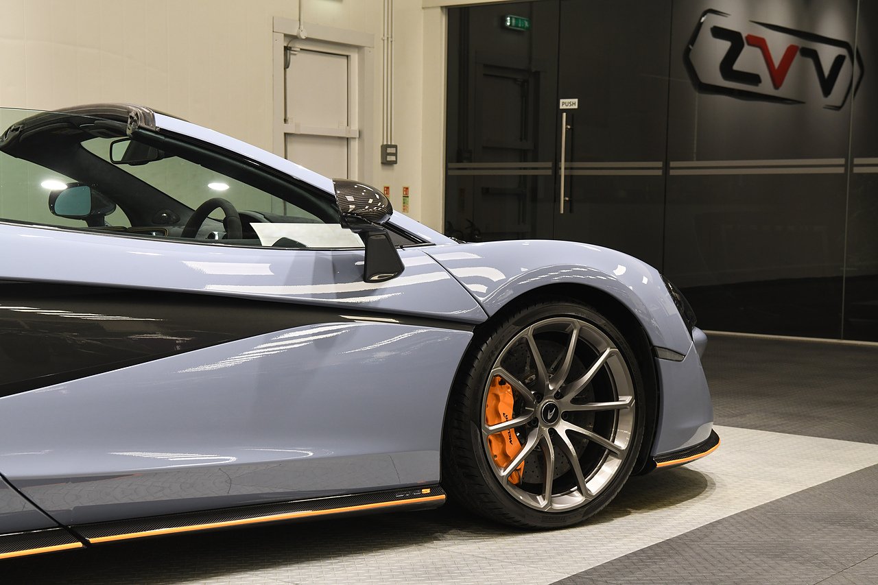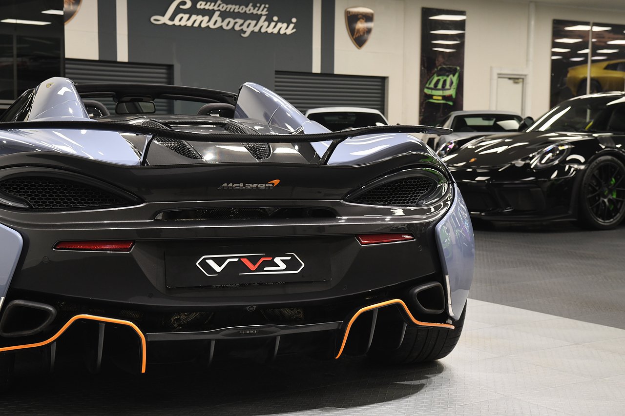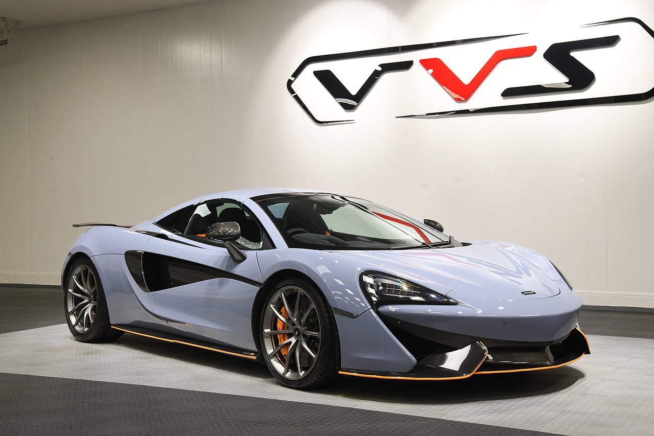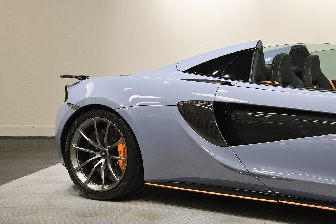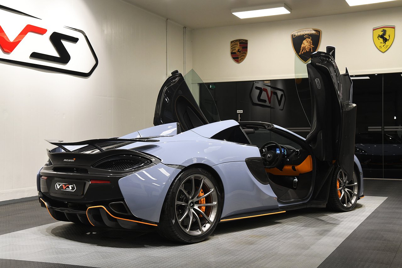 VVS are delighted to offer this 2019 McLaren 570S Spider presented in MSO Abyss Black with a Alcantara and Leather interior featuring McLaren Orange accents to the seats and lower dash. This example is equipped with Heated and electric memory seats, Carbon fibre interior package, Carbon fibre and alcantara steering wheel, Carbon Fibre Exterior Pack 1, Carbon fibre door mirrors and side intakes, Soft close doors, Front lift system, Electric steering column, Bowers & Wilkins premium audio, Front and rear parking sensors, Rear camera, Carbon fibre rear spoiler, MSO defined titanium exhaust, McLaren orange callipers, 10-Spoke lightweight alloy wheels in titanium and full service history from new. Please note, this car is currently wrapped in Luna blue satin with full gloss PPF.