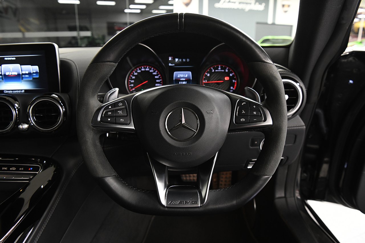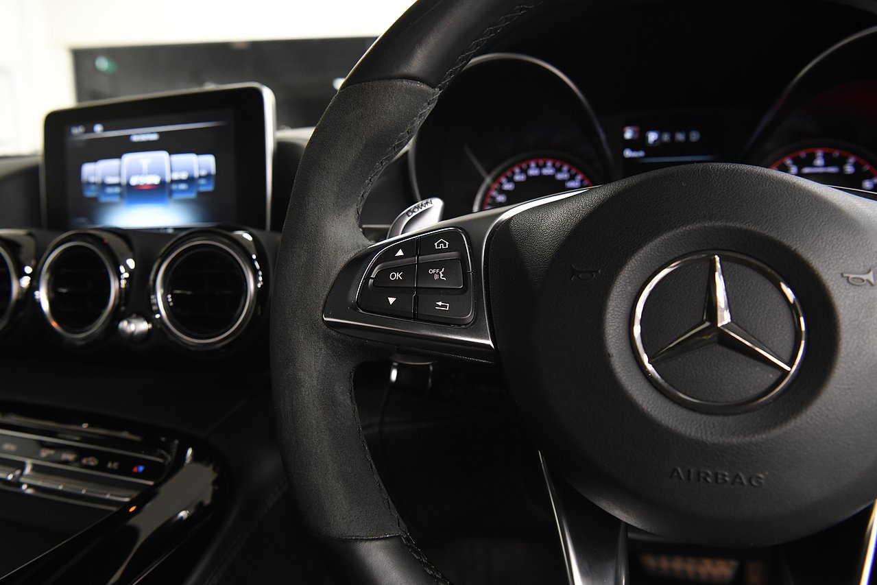 VVS are delighted to offer this 3 owner from new 2015/65 Mercedes AMG GT-S Premuim presented in Magnetite Black with black leather interior. This is a full specification car including Fully electric and memory seats, Heated seats, AMG black diamond interior package, AMG switchable performance exhaust system, Keyless go, Mirror package, Rear parking camera, Command navigation including DAB, Panoramic roof and a comprehensive service history from new.