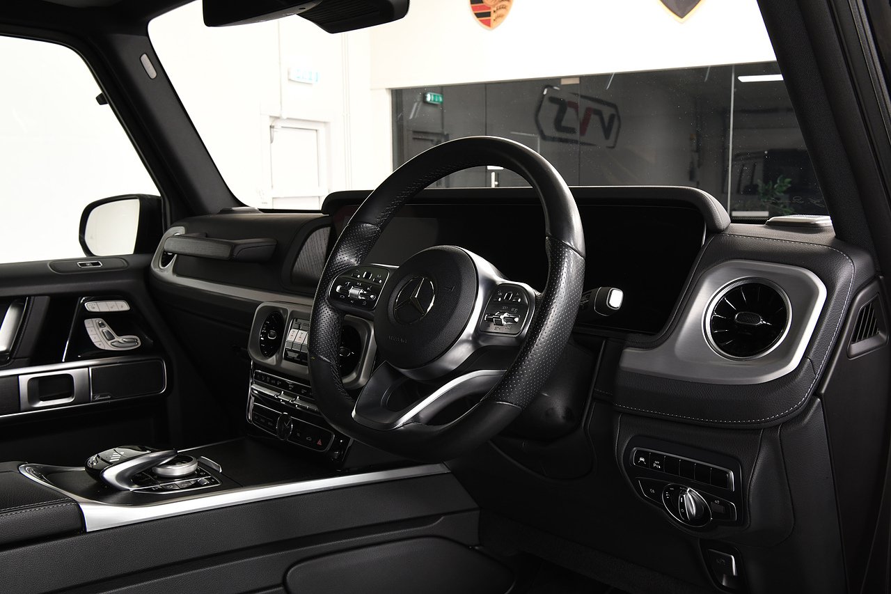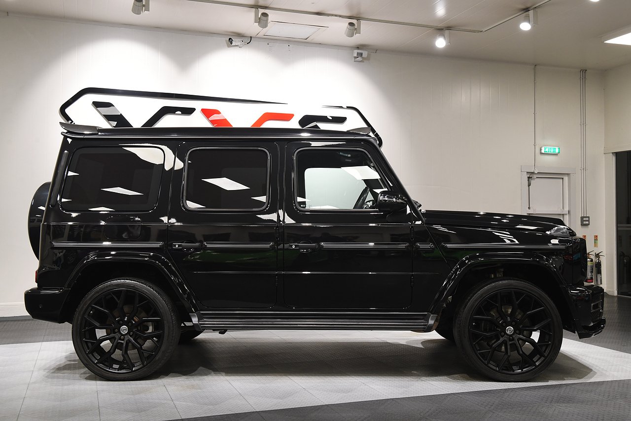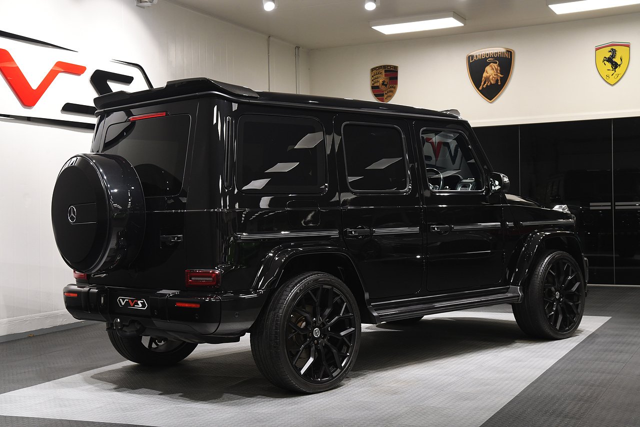 VVS are delighted to offer this 2021 Mercedes G400d AMG Line presented in Obsidian Black with full Black leather interior. This a full specification car including Fully electric and memory front seats, Heated rear seats, Burmester surround sound, Sunroof, 360 Surround view cameras, Front and rear parking sensors, Cruise control, Lane keep assist, Urban G63 front bumper with DRL's, Urban carbon bumper over-rider set, Urban upper light cluster, Urban rear spoiler, Urban carbon fibre bonnet, Urban lettering, Urban 23" LC1 alloy wheels and a comprehensive service history from new.