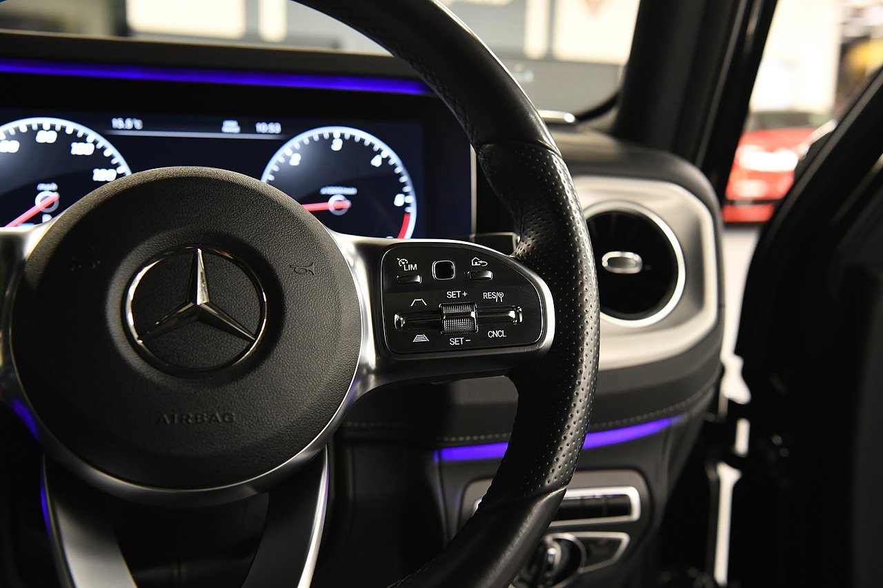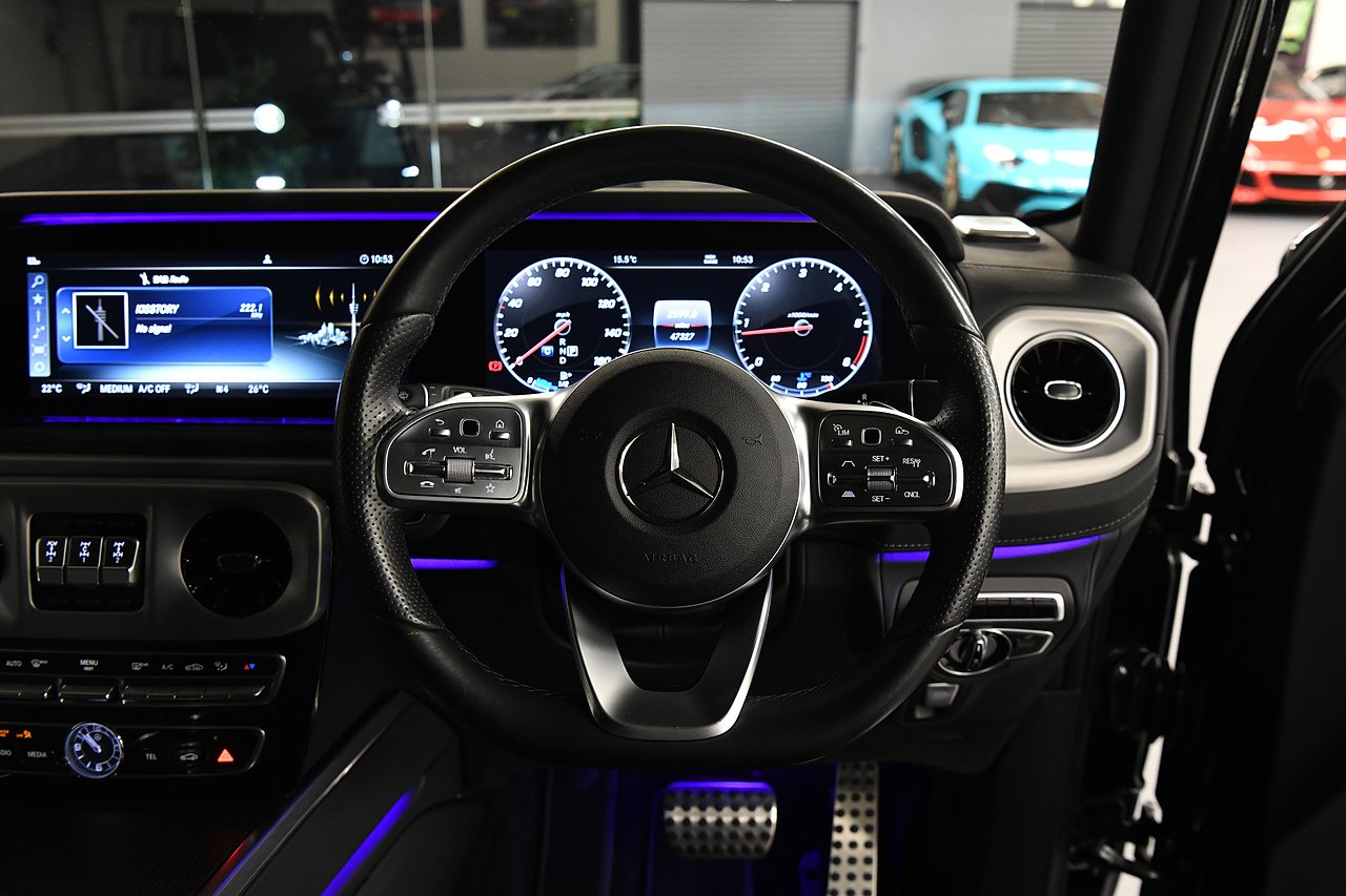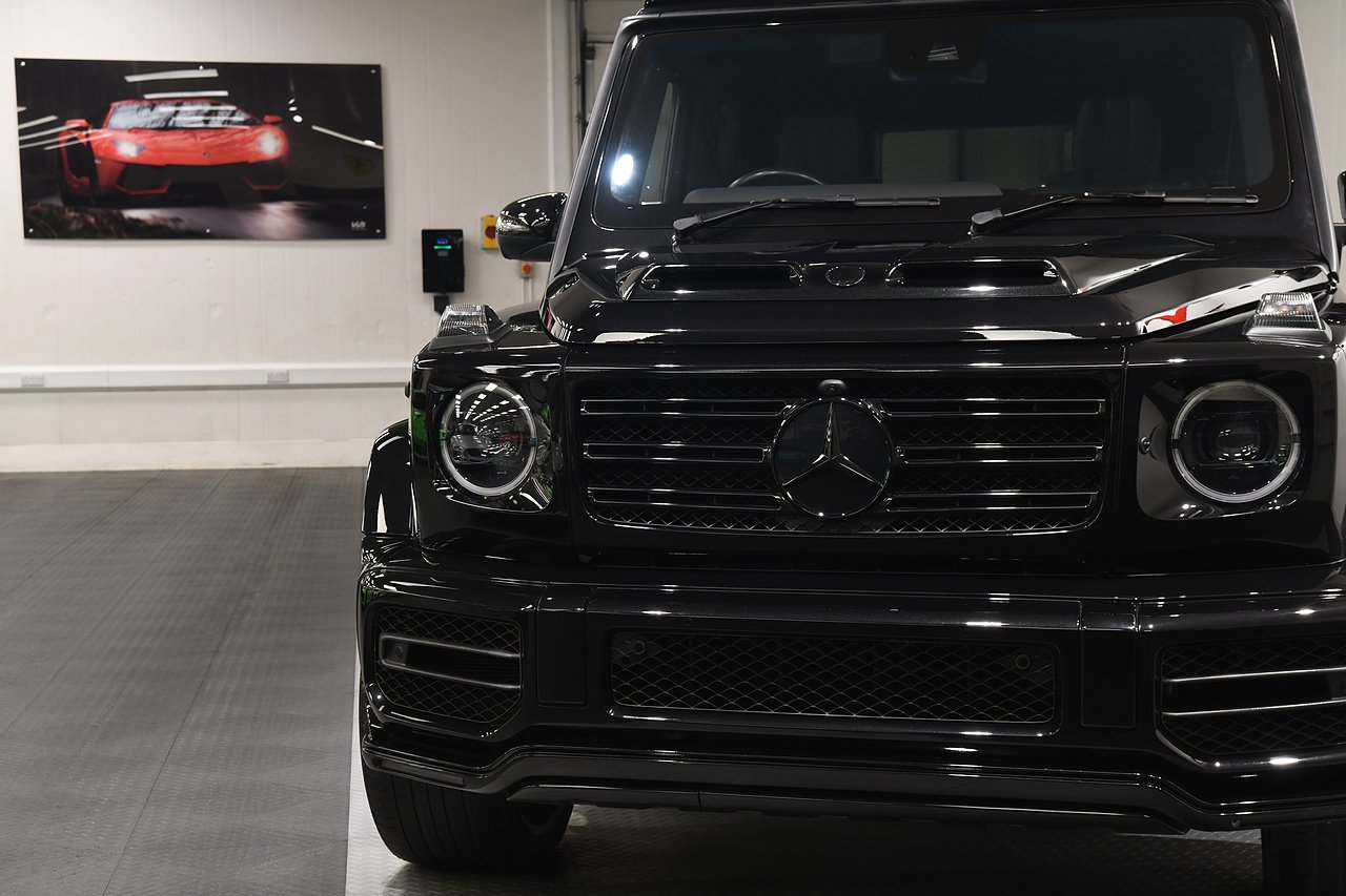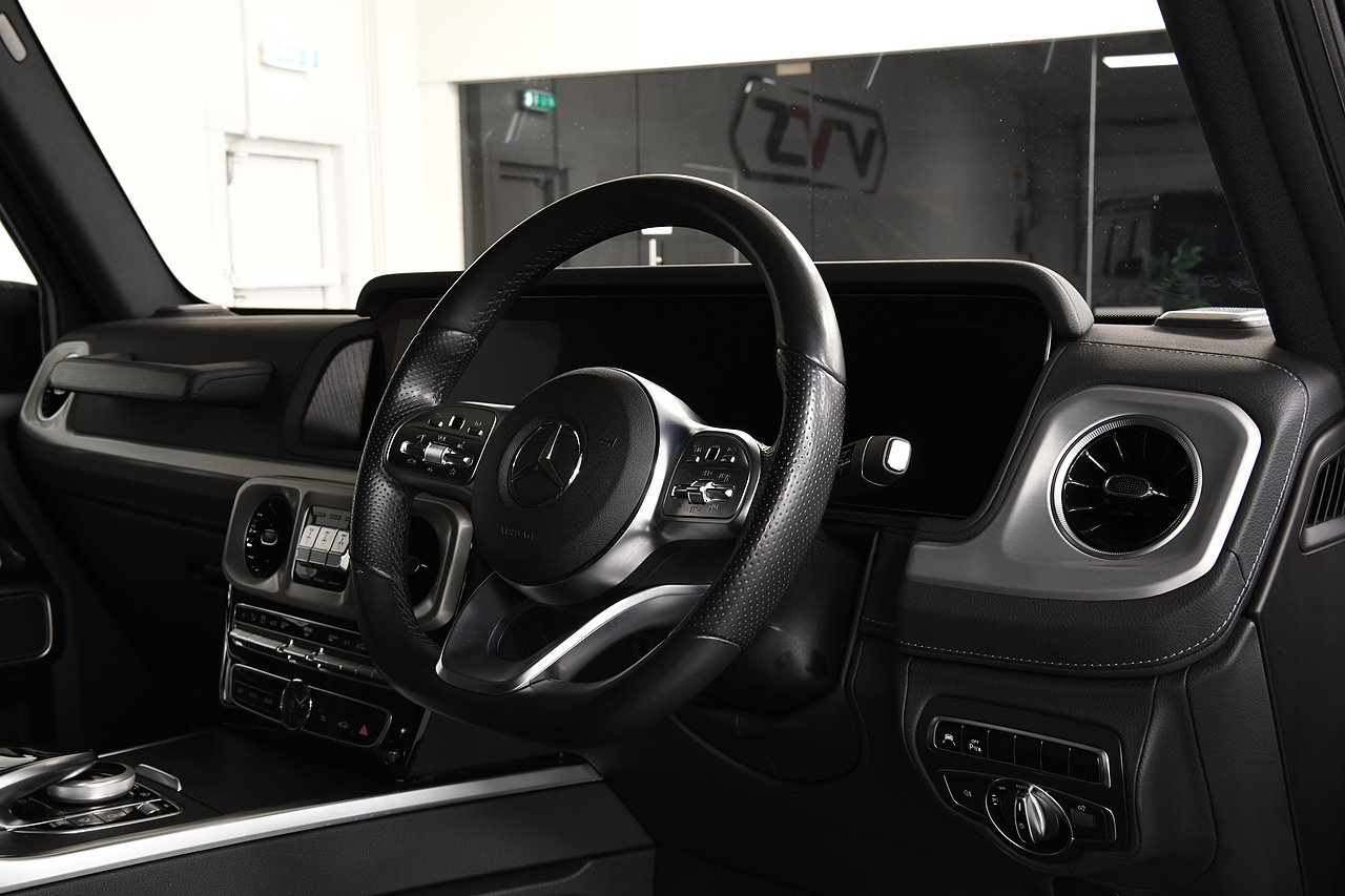 VVS are delighted to offer this 2021 Mercedes G400d AMG Line presented in Obsidian Black with full Black leather interior. This a full specification car including Fully electric and memory front seats, Heated rear seats, Burmester surround sound, Sunroof, 360 Surround view cameras, Front and rear parking sensors, Cruise control, Lane keep assist, Urban G63 front bumper with DRL's, Urban carbon bumper over-rider set, Urban upper light cluster, Urban rear spoiler, Urban carbon fibre bonnet, Urban lettering, Urban 23" LC1 alloy wheels and a comprehensive service history from new.