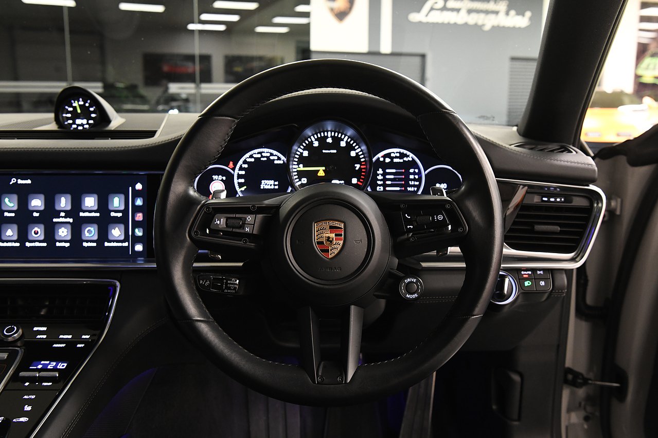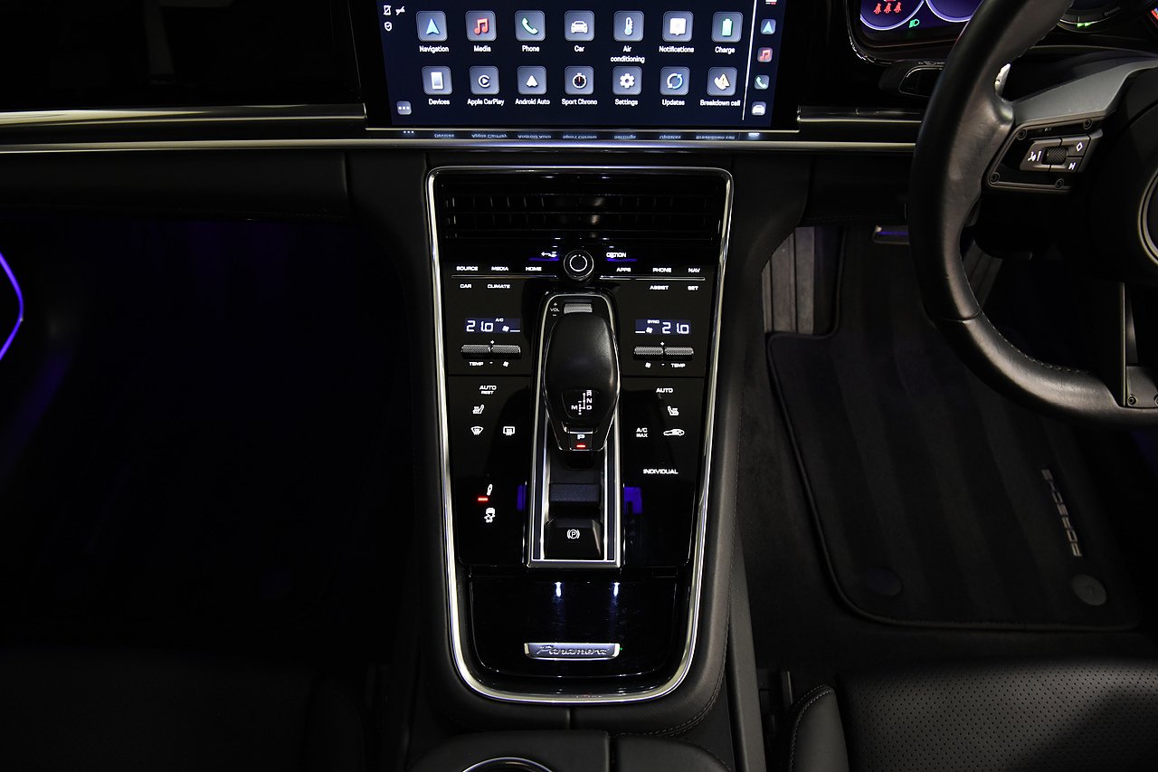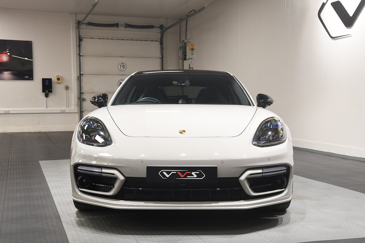 VVS are pleased to offer this 2022/72 Porsche Panamera V6 E-hybrid 4S finished in Crayon Grey over Black leather interior. This example is equipped with 18 way electric front seats with memory function, Heated front and rear seats, Heated steering wheel, Bose surround sound, Porsche crest embossed on headrests, Porsche crest embossed on armrest, Sports chrono package, Apple carplay / Android auto, Navigation, Cruise control, Voice command, Soft close doors, Front and rear parking sensors, 360 degree cameras, 4 zone climate control, Piano black interior trim, Ambient lighting, Sliding lass panoramic roof, Gloss black exterior package, Black brake callipers and 20/21" Alloys finished in Gloss black with Diamond face and Porsche warranty until 09/26