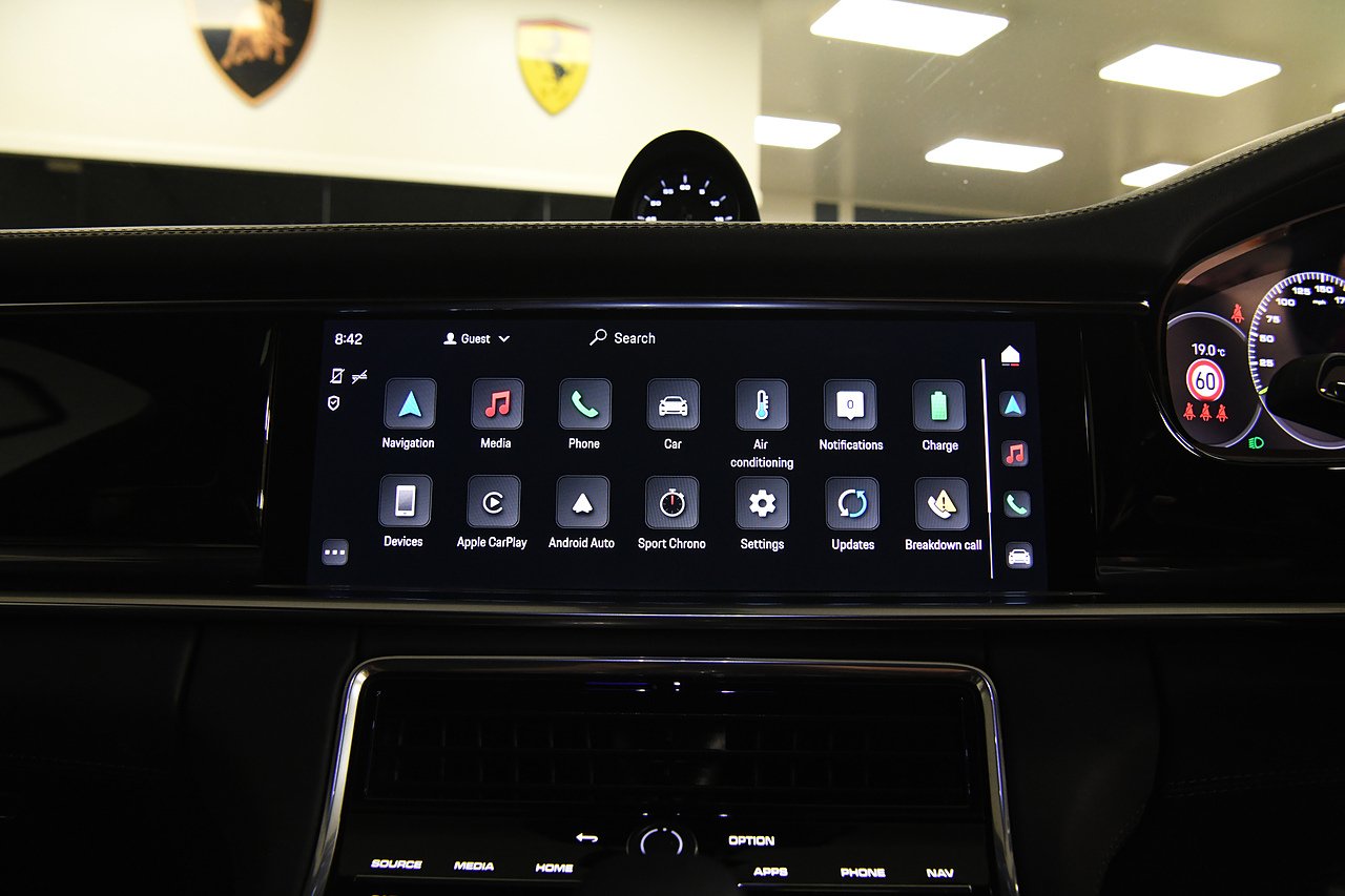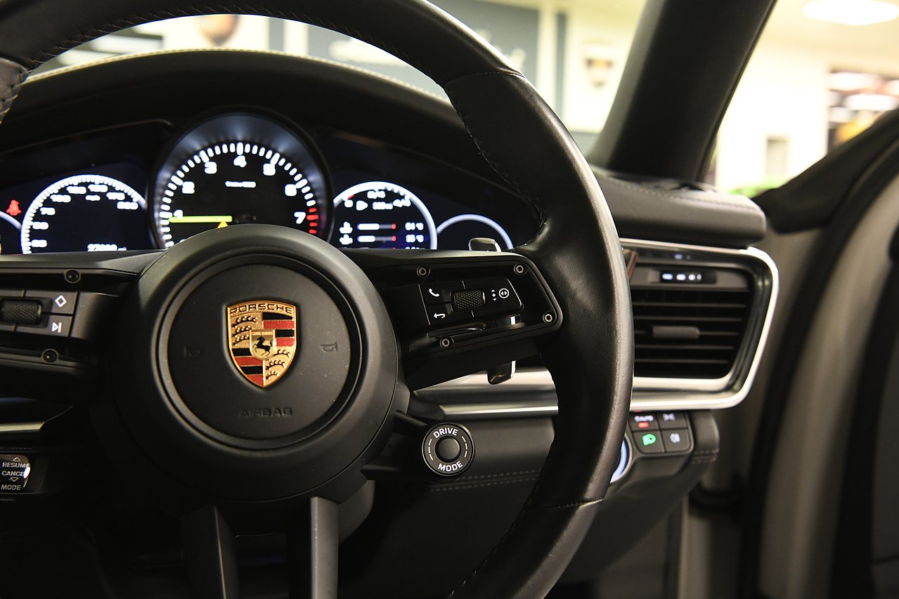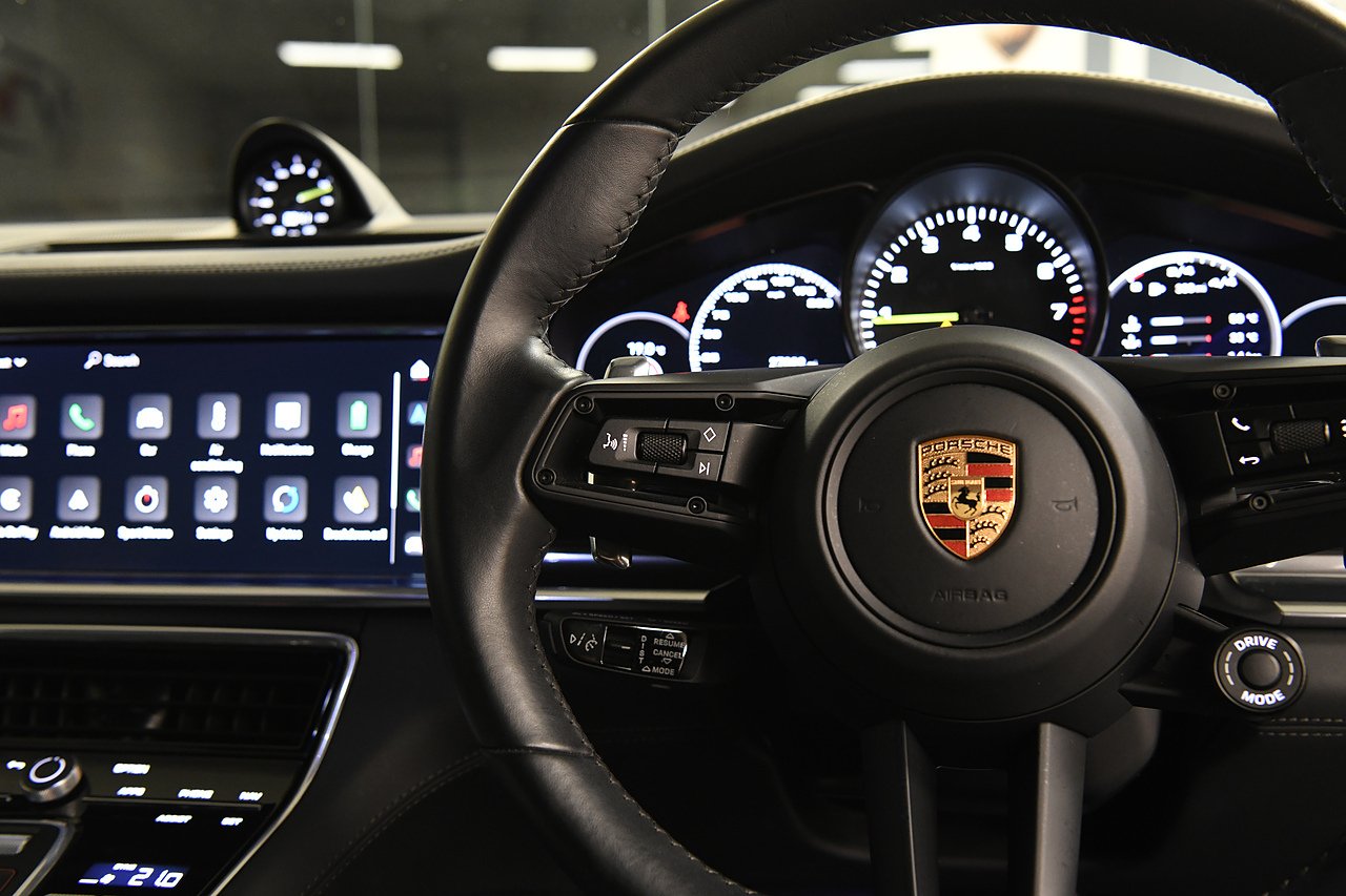 VVS are pleased to offer this 2022/72 Porsche Panamera V6 E-hybrid 4S finished in Crayon Grey over Black leather interior. This example is equipped with 18 way electric front seats with memory function, Heated front and rear seats, Heated steering wheel, Bose surround sound, Porsche crest embossed on headrests, Porsche crest embossed on armrest, Sports chrono package, Apple carplay / Android auto, Navigation, Cruise control, Voice command, Soft close doors, Front and rear parking sensors, 360 degree cameras, 4 zone climate control, Piano black interior trim, Ambient lighting, Sliding lass panoramic roof, Gloss black exterior package, Black brake callipers and 20/21" Alloys finished in Gloss black with Diamond face and Porsche warranty until 09/26